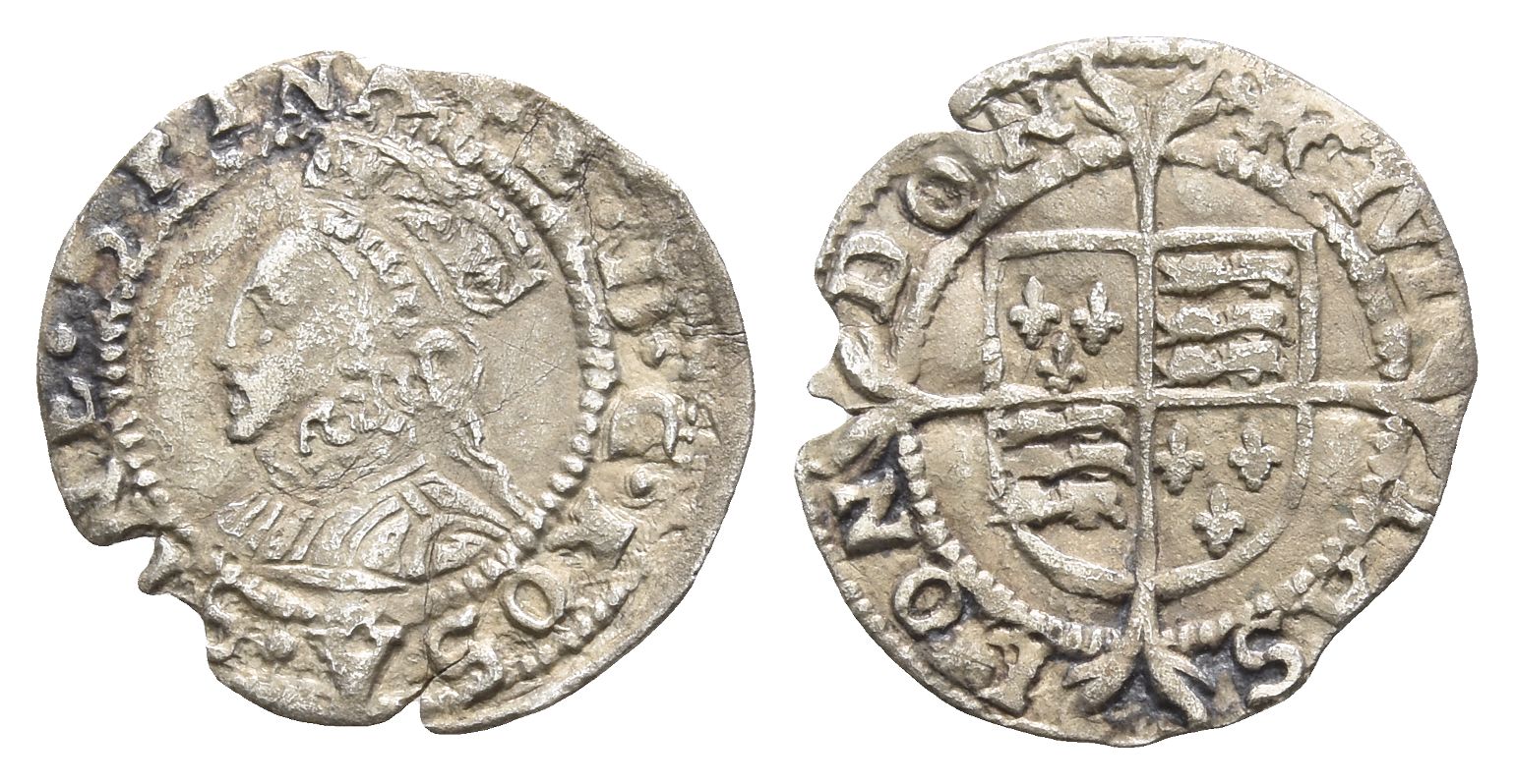 (Cross crosslet) E • D • G • ROSA • SINE • SPINA, crowned bust (3H) to left, wearing ruff / (Cross crosslet) CIVI-TAS LON-DON, coat of arms over long cross fourchée. North 1988; SCBC 2558. 0.44gr, 15mm, 8h.