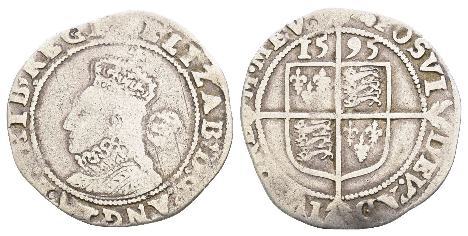 England. Tudor, Elizabeth I AR Sixpence. Dated 1595. Tower (London) mint; i.m: key. Sixth issue.