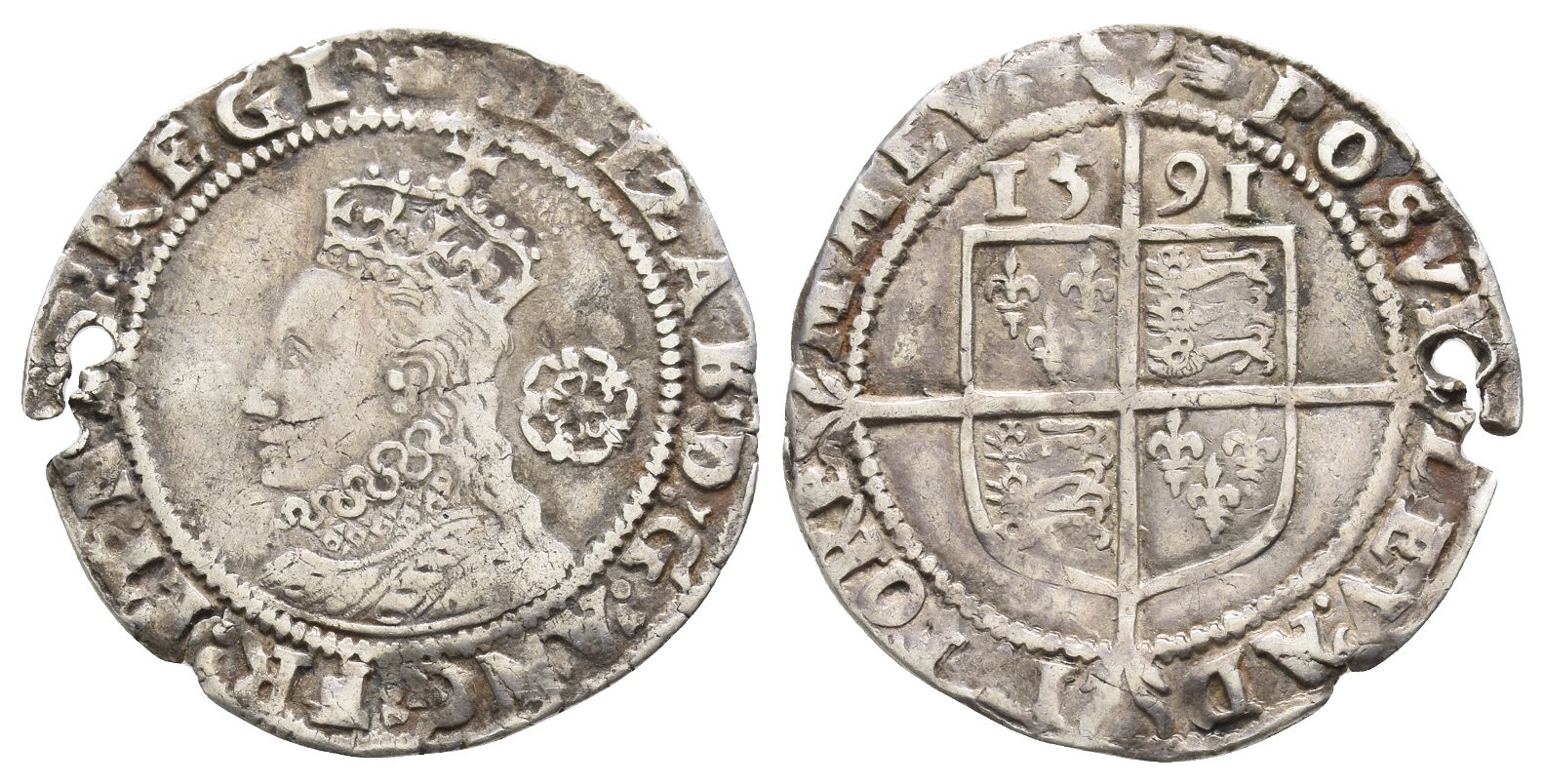 England. Tudor, Elizabeth I AR Sixpence. Dated 1591. Tower (London) mint; i.m: hand. Sixth issue.