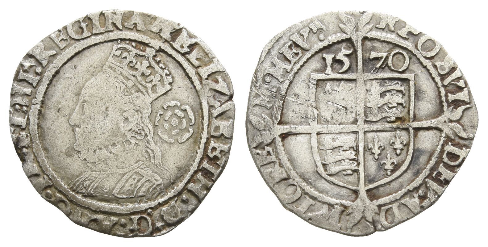 England. Tudor, Elizabeth I AR Threepence. Dated 1570. Tower (London) mint; i.m: castle. Third and Fourth issues.