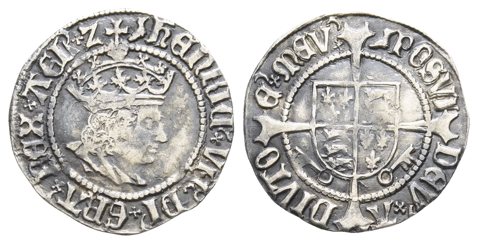 (Martlet) ҺЄNRIC '× V•I•I '× DI '× GRA '× RЄX × AGL '× Z, crowned and draped bust to right / (Martlet) POSVI DЄV '× A-DIVTO-Є '× ᙏЄV '×, coat-of-arms over long cross fourchée; two keys below. North 1751; SCBC 2262. 1.50gr, 20mm, 5h.