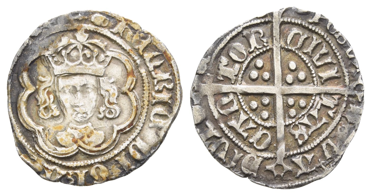 (Tun) ҺЄNRIC ' DI ' GRA ' [RЄX ANGL Z F], crowned facing bust within double polylobe / POSVI DЄV A-DIVT[O-Є ᙏЄV] and CIVI-TAS CAꞂ-TOR, long cross fourchée; triple pellets in quarters. North 1712; SCBC 2211. 1.32gr, 19mm, 4h.