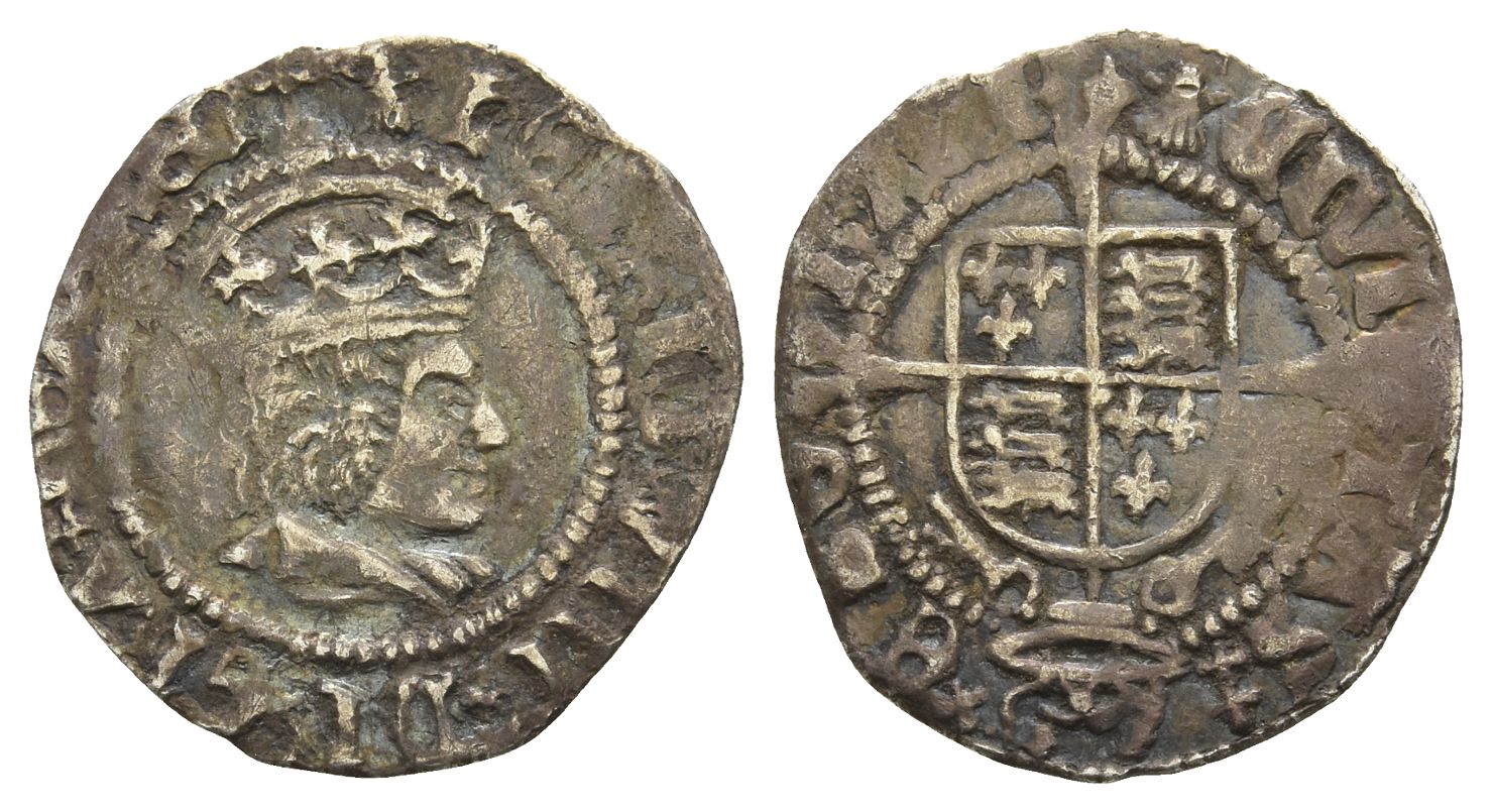 (Escallop) ҺЄNRIC VIII DI 'ˣ GRA 'ˣ RЄX AG Z, crowned bust right with features of Henry VII / (Escallop) CIVI-TAS ˣˣ ЄBO-RACI, coat-of-arms over long cross fourchée, tasseled gallero below at base of cross. North 1770; SCBC 2326. 1.44gr, 19mm, 11h.