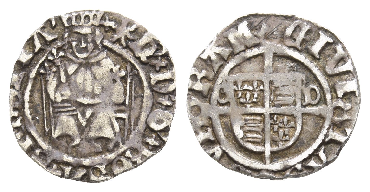 (Radiant star) Һ' ˣ D' ˣ G' ˣ ROSA ˣ SIЄ ˣ SPIA, Henry enthroned facing, holding lis-tipped sceptre and globus cruciger, throne pillar on either side surmounted by lis / ˣ CIVI-TAS ˣ DVR-RAᙏ, coat-of-arms over long cross fourchée; C D flanking. SCBC 2354. 0.70gr, 14mm, 9h.