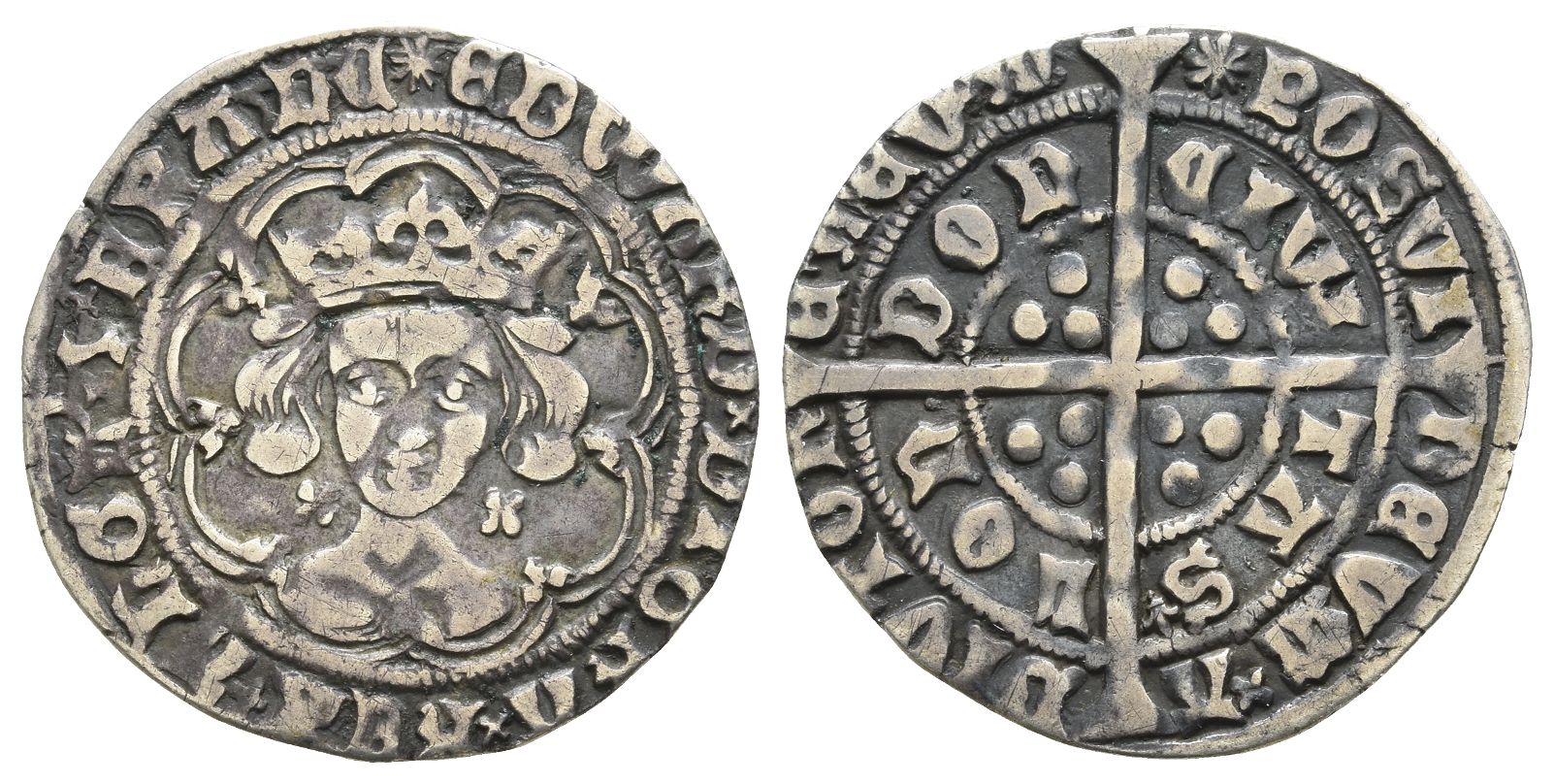 Back to previous pageEngland. York, Edward IV AR Groat. Struck 1469-1470. London (Tower) mint; i.m: sun. Light coinage.