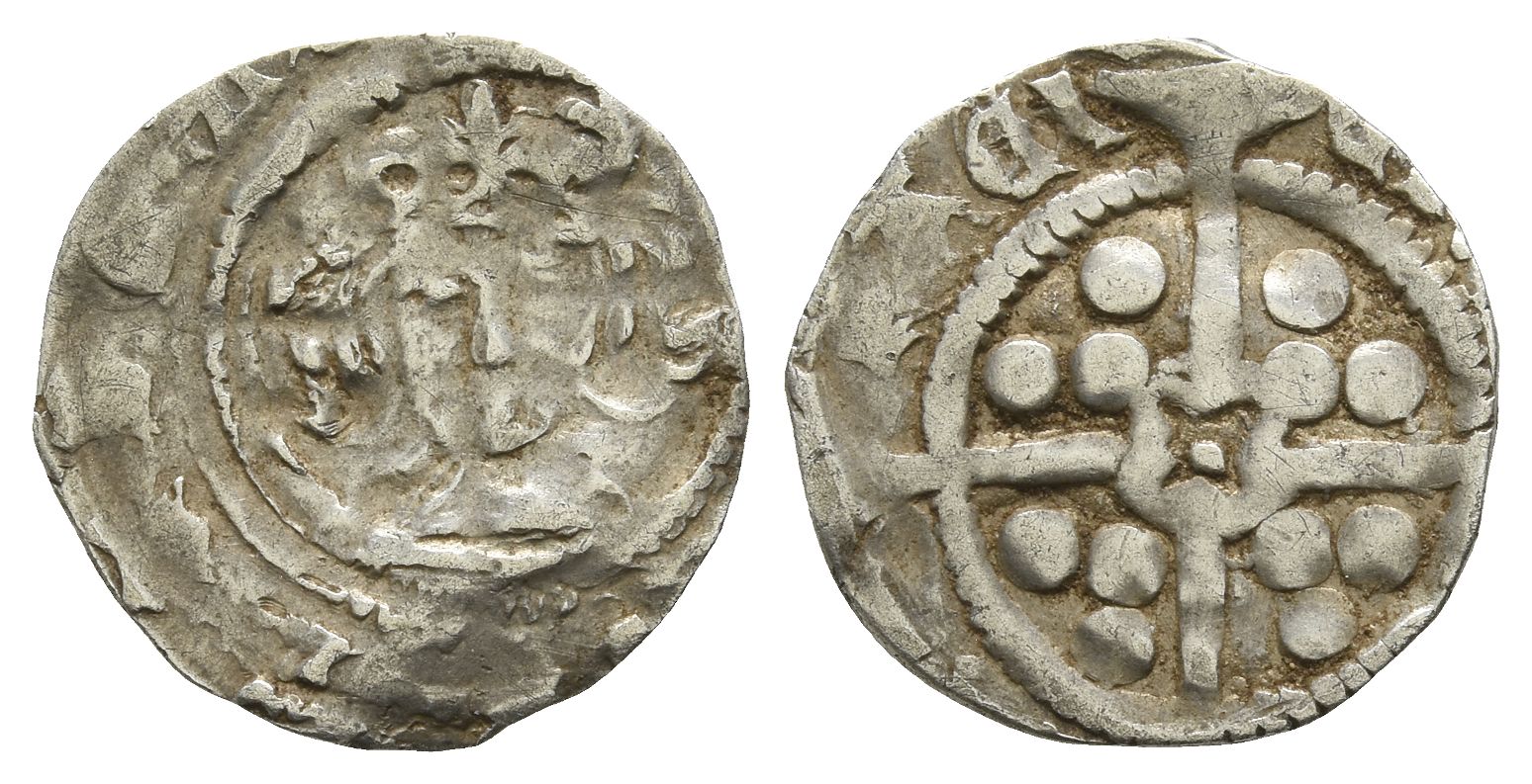 Illegible inscription, crowned facing bust / CIV[...]RACI, long cross pattée with pellet-in-quatrefoil at centre; triple pellets in quarters. Cf. SCBC 2062 or 1924. 0.90gr, 16mm, 6h.