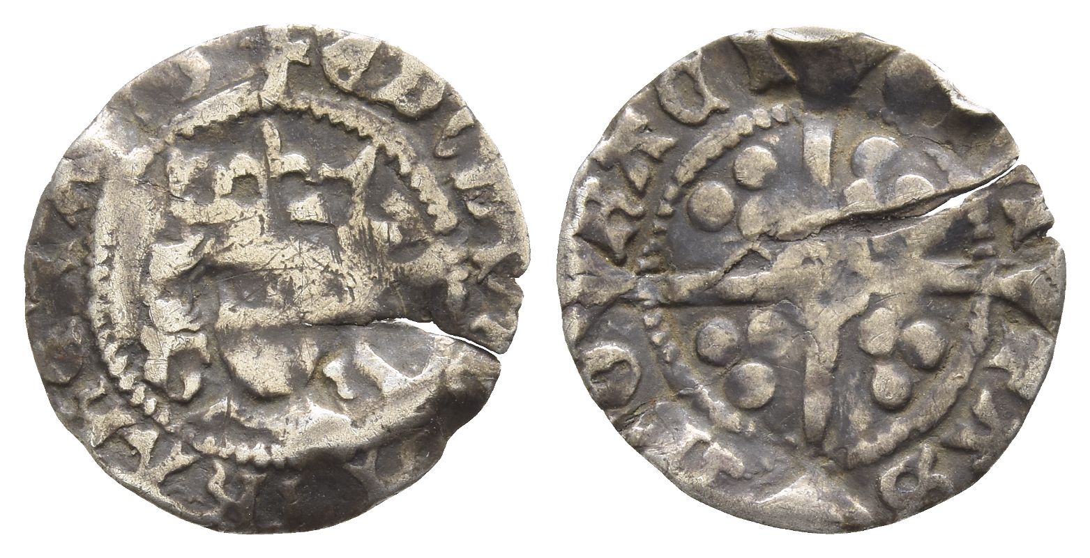 (Short cross fitchee over lis) ЄDWARDVS..., crowned facing bust; G and key flanking neck / CIVI-TAS ЄBO-RACI, long cross pattée with voided quatrefoil at centre; triple pellets in quarters. SCBC 2125. 0.70gr, 16mm, 6h.