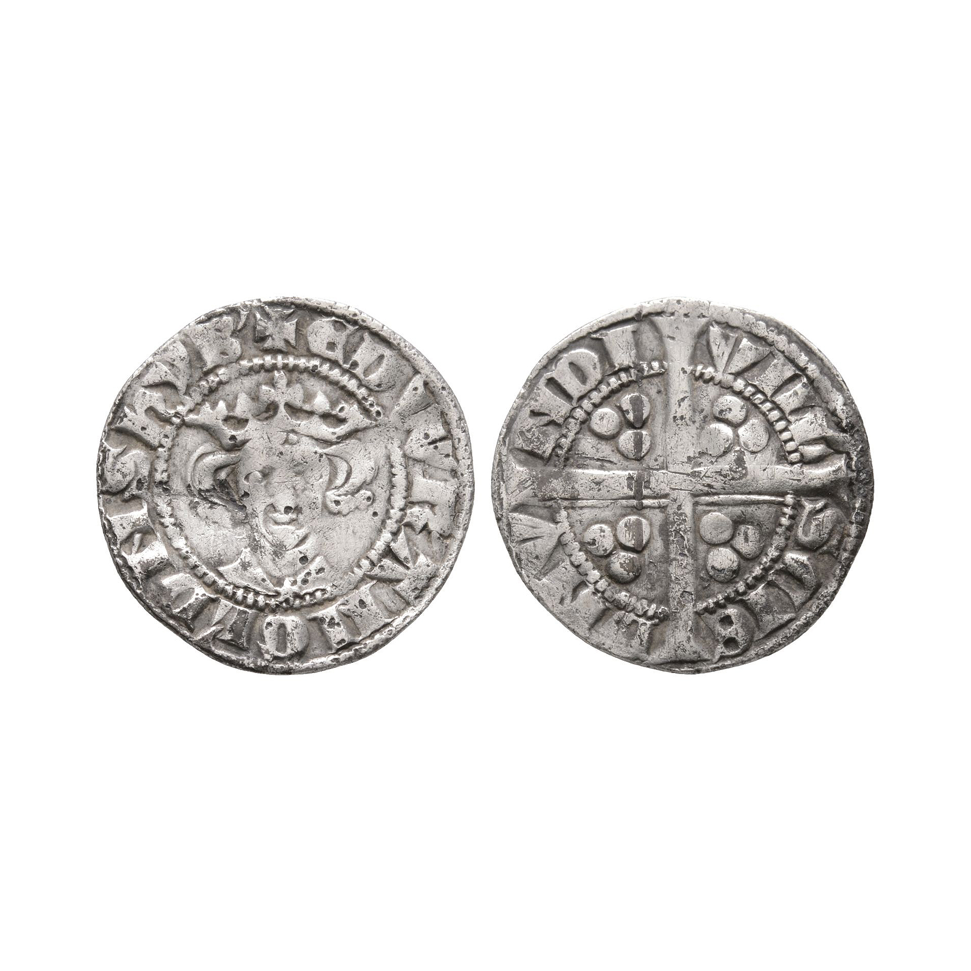 Class 9. Obv: facing bust with star on breast and EDW R ANGL DNS HYB legend. Rev: long cross and pellets dividing VILL SCIE DMV NDI legend for Bury St Edmunds mint. 1.34 grams, 17 mm.