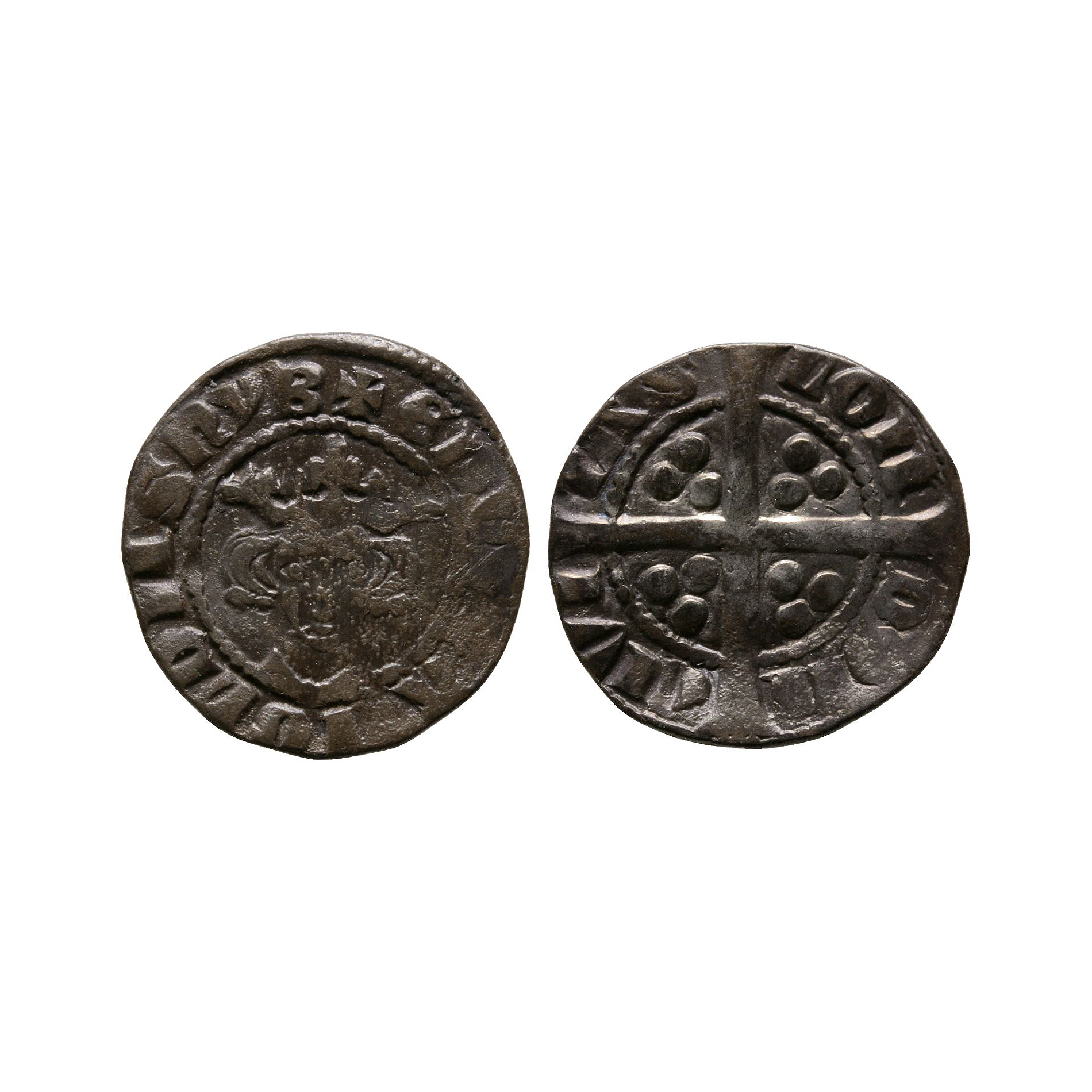 Class 3c. Obv: facing bust and +EDW' R ANGL' DNS HYB legend. Rev: long cross and pellets with CIVI TAS LON DON legend for London mint. 1.29 grams, 17 mm.