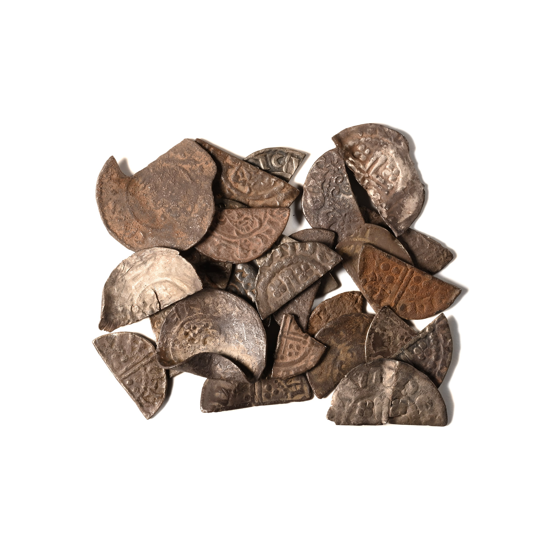 Group comprising: Tealby, cut halfpenny (1), short cross, pennies (3), cut halfpennies (10), cut farthings (5), Henry III, long cross, cut halfpennies (6), cut farthings (2). 16.03 grams total.