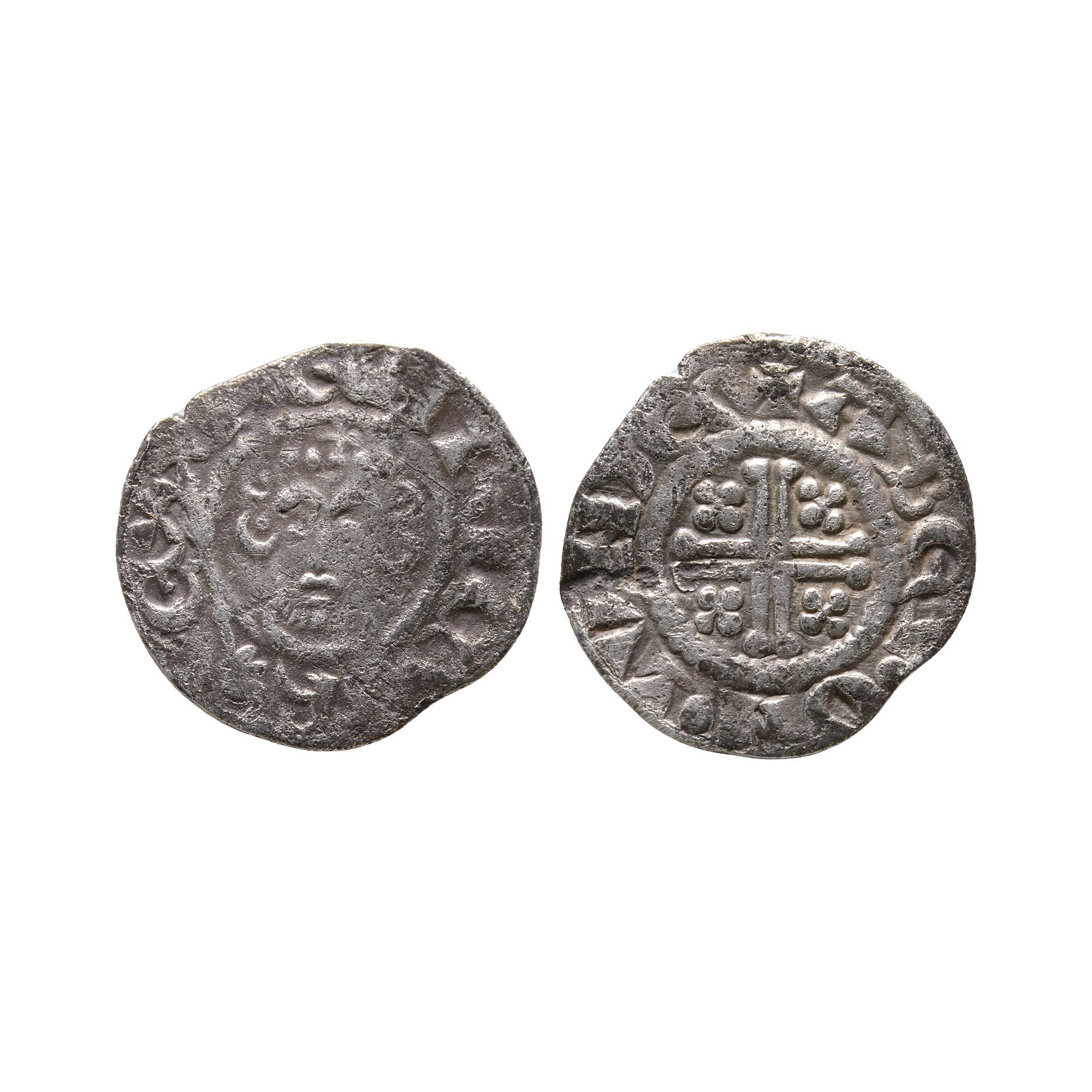 Class 6c. Obv: facing bust with HENRICVS REX legend. Rev: short voided cross with +ABEL.ON.LVNDE legend for the moneyer Abel at London mint. 1.33 grams.