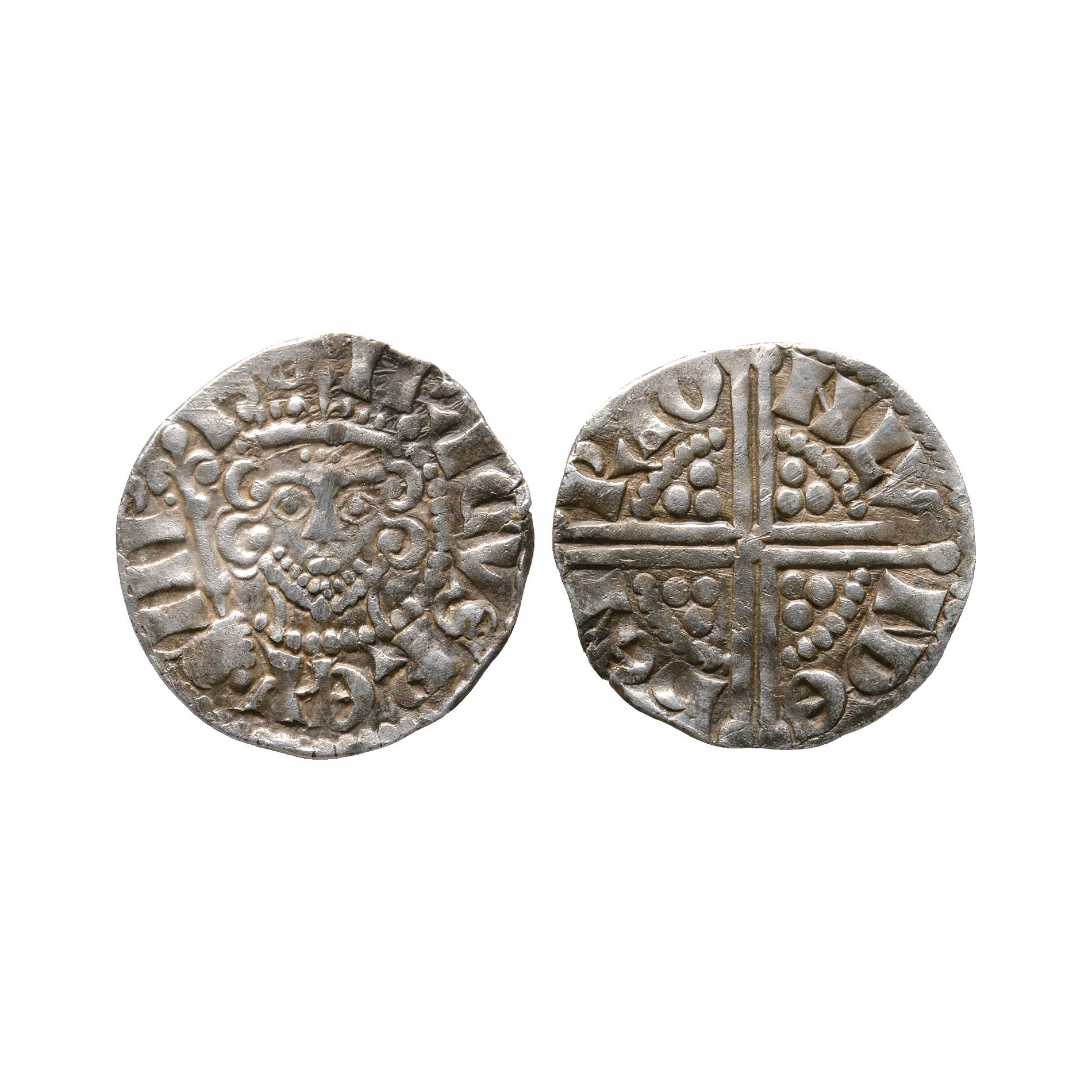 Class 5c. Obv: facing bust with HENRICVS REX III legend. Rev: voided long cross and pellets with HEN RIO NLV NDE legend for the moneyer Henri at London mint. 1.55 grams.