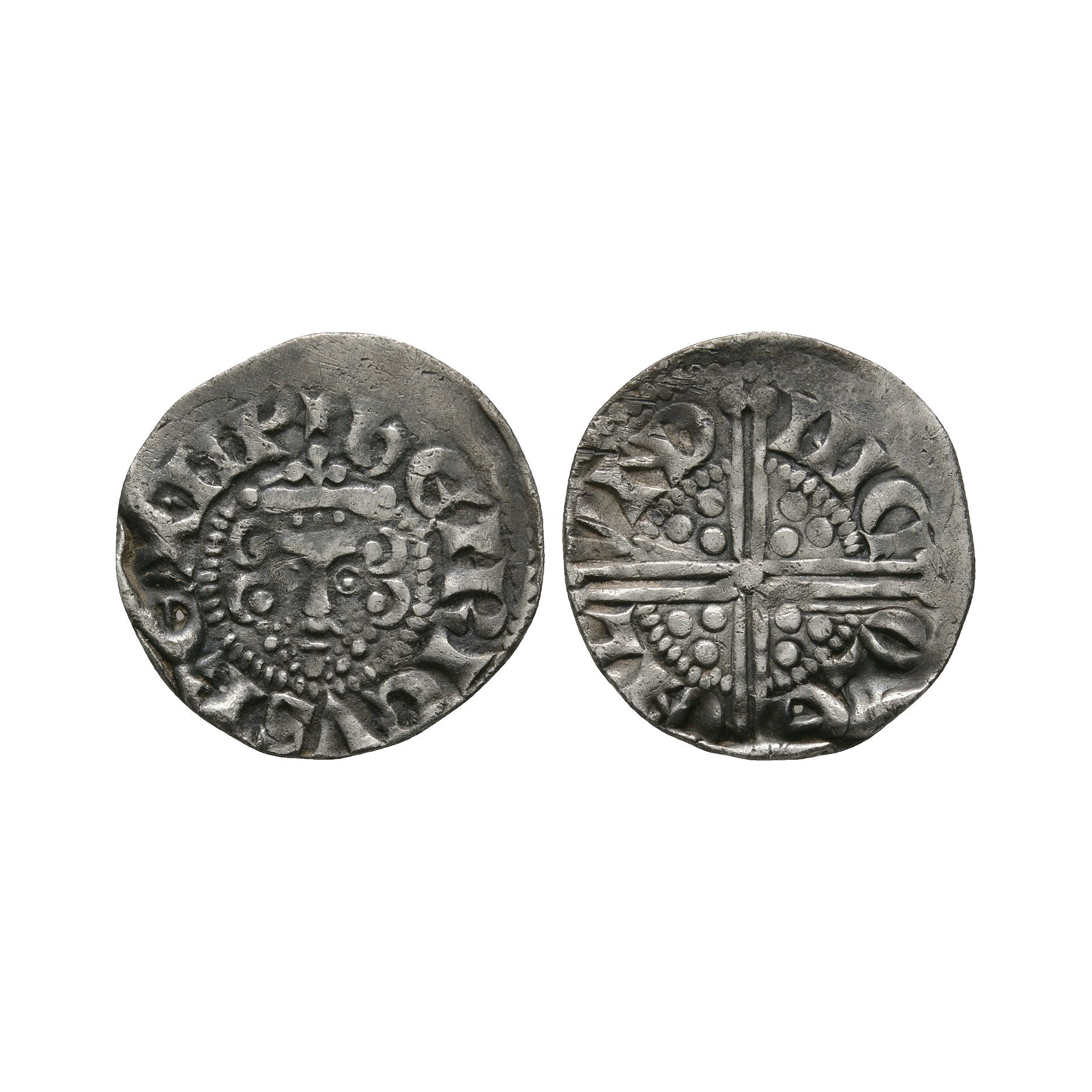 Class 3b. Obv: facing bust with hENRICUS REX III legend. Rev: long voided cross and pellets dividing HIC OLE ONL VHD legend for the moneyer Nichole at London mint. 1.25 grams, 18 mm.