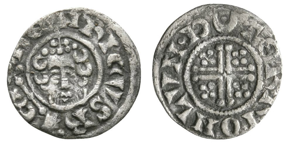 Although surviving medieval documents referring to the production of dies for English round halfpennies and round farthings in the reign of Henry III (intended to replace the traditional means of providing fractions by shearing pennies into halves and quarters) have been known of since the 18th century (see Ruding, Rev. Rogers, Annals of the Coinage of Great Britain, 3rd edition, London, 1840, volume I, p.182 and Madox, Thomas, History and Antiquities of the Exchequer, 2nd edition, London, 1769, volume II, p.87), it was only as recently as 1991 that the first coin example (a farthing) was discovered by metal detector; since then examples for all four of the London moneyers (Abel, Elis, Rauf and Terri) working in the early class 7 short cross period have been found although only a very few specimens are known in all; apart from size and weight, the very obvious visual difference between the pennies and the fractions is the initial mark at the start of the reverse legend with this being a cross for the pennies and a crescent-and-pellet for the fractions.