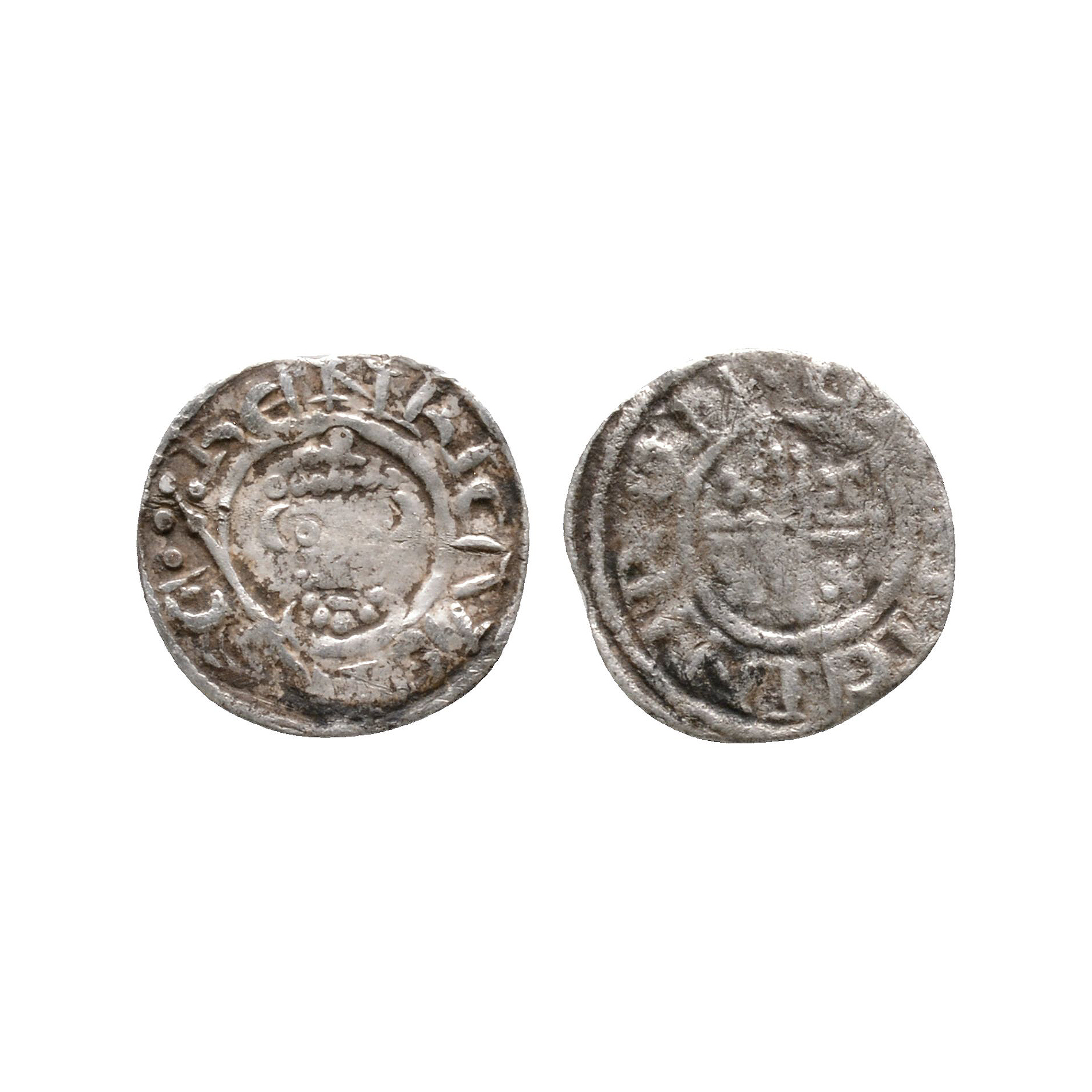 Class 4b. Obv: facing bust with sceptre and HENRICVS REX legend. Rev: short voided cross and quatrefoils with +MEINIR.ON.C[AN] legend for the moneyer Meinir at Canterbury mint. 1.30 grams.