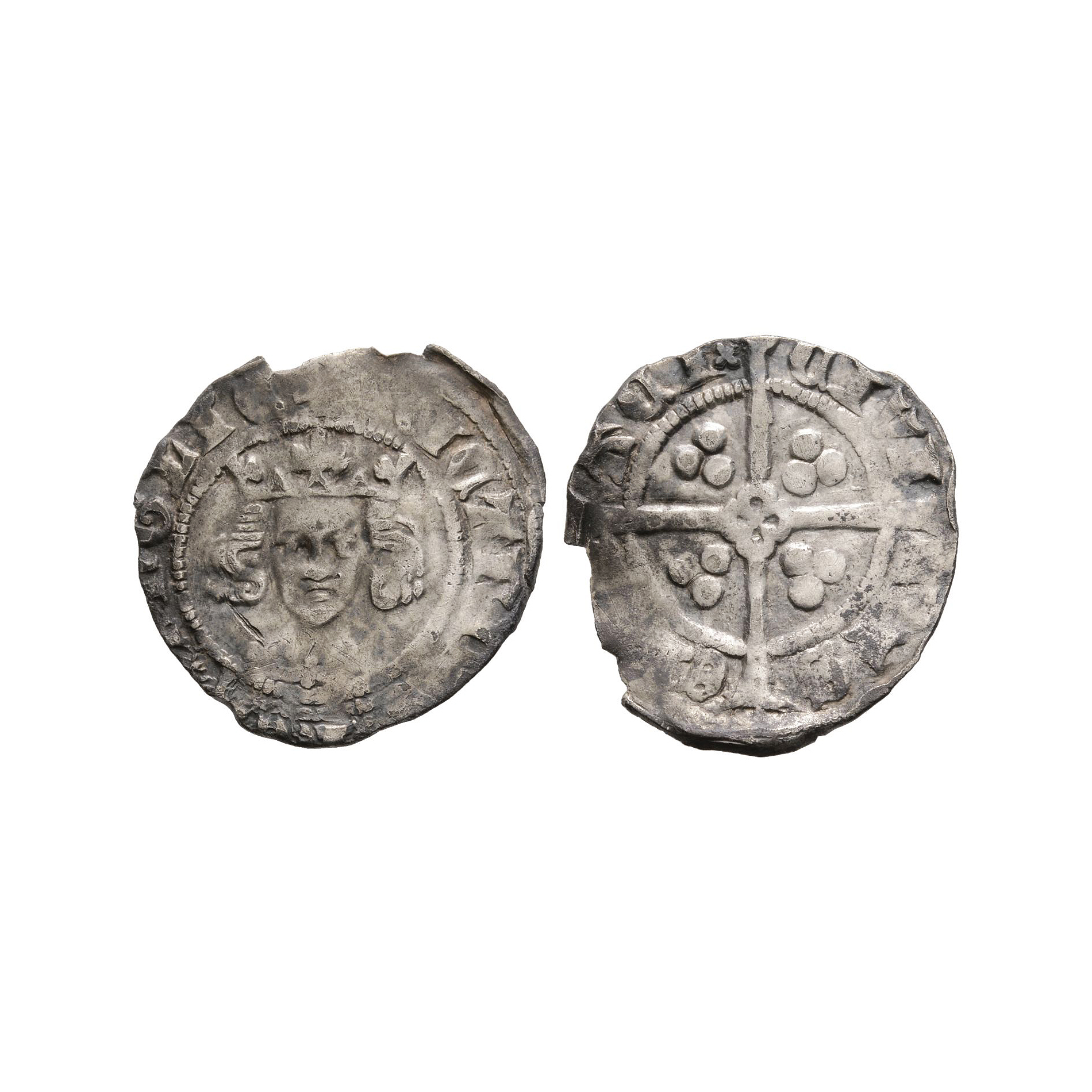 Obv: facing bust with RICARDVS REX ANGLIE legend. Rev: long cross with quatrefoil centre and pellets dividing CIVI TAS EBO RACI legend for York mint. 0.95 grams.