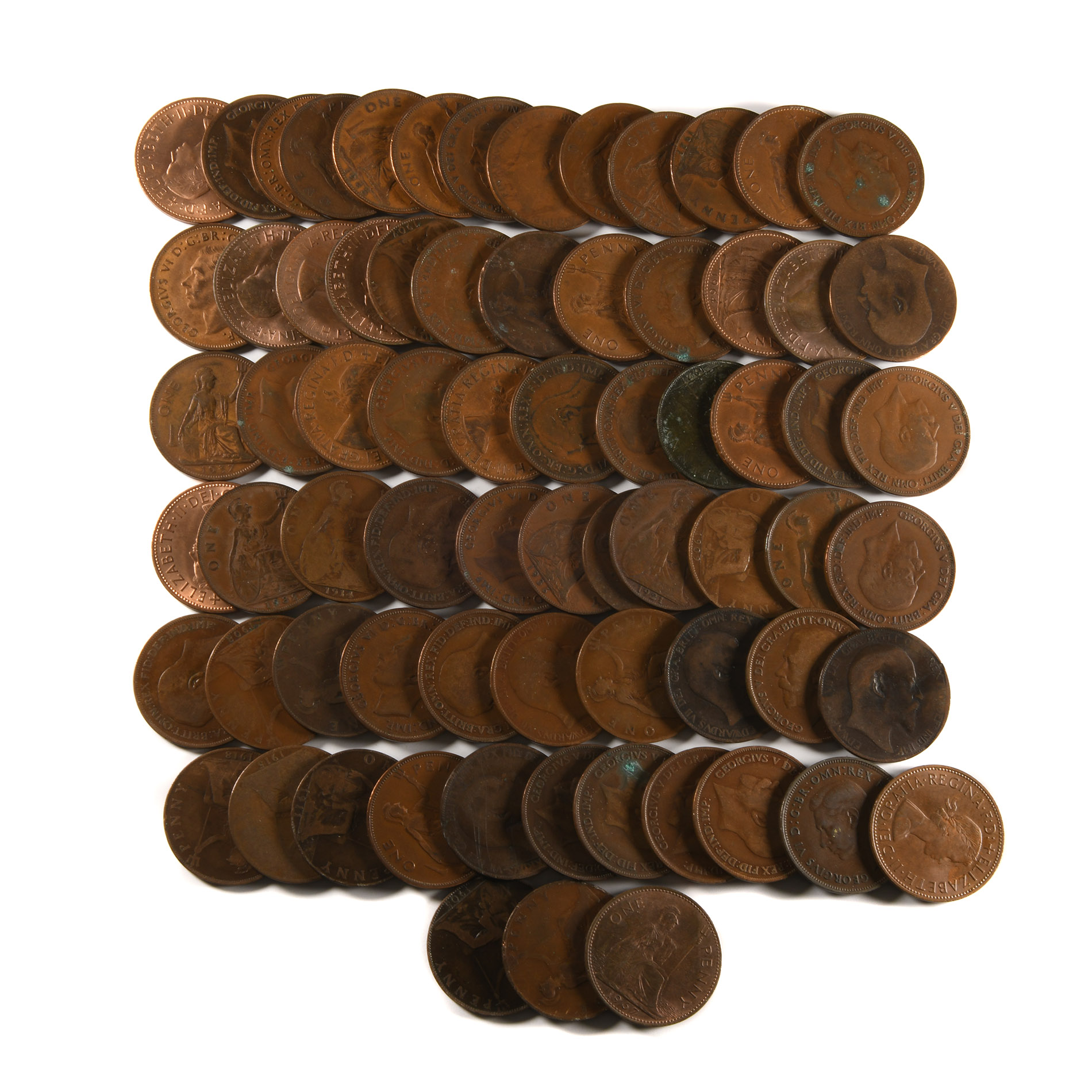 English Milled Coins - Edward VII, George V, VI, & Elizabeth II - 1902-1967 - AE Penny Group [71] 1902-1967 A.D.