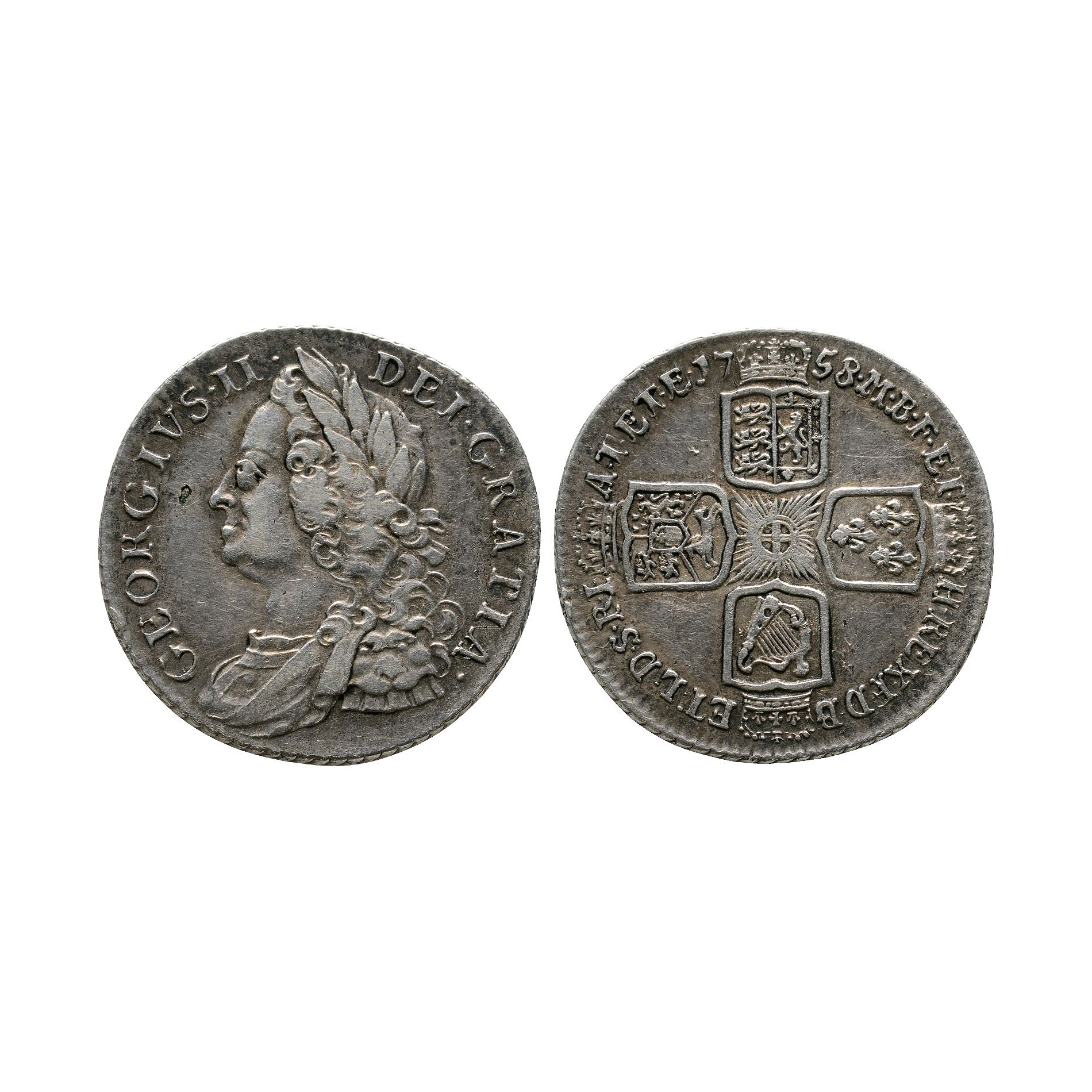 English Milled Coins - George II - 1758 - AR Shilling Dated 1758 A.D.