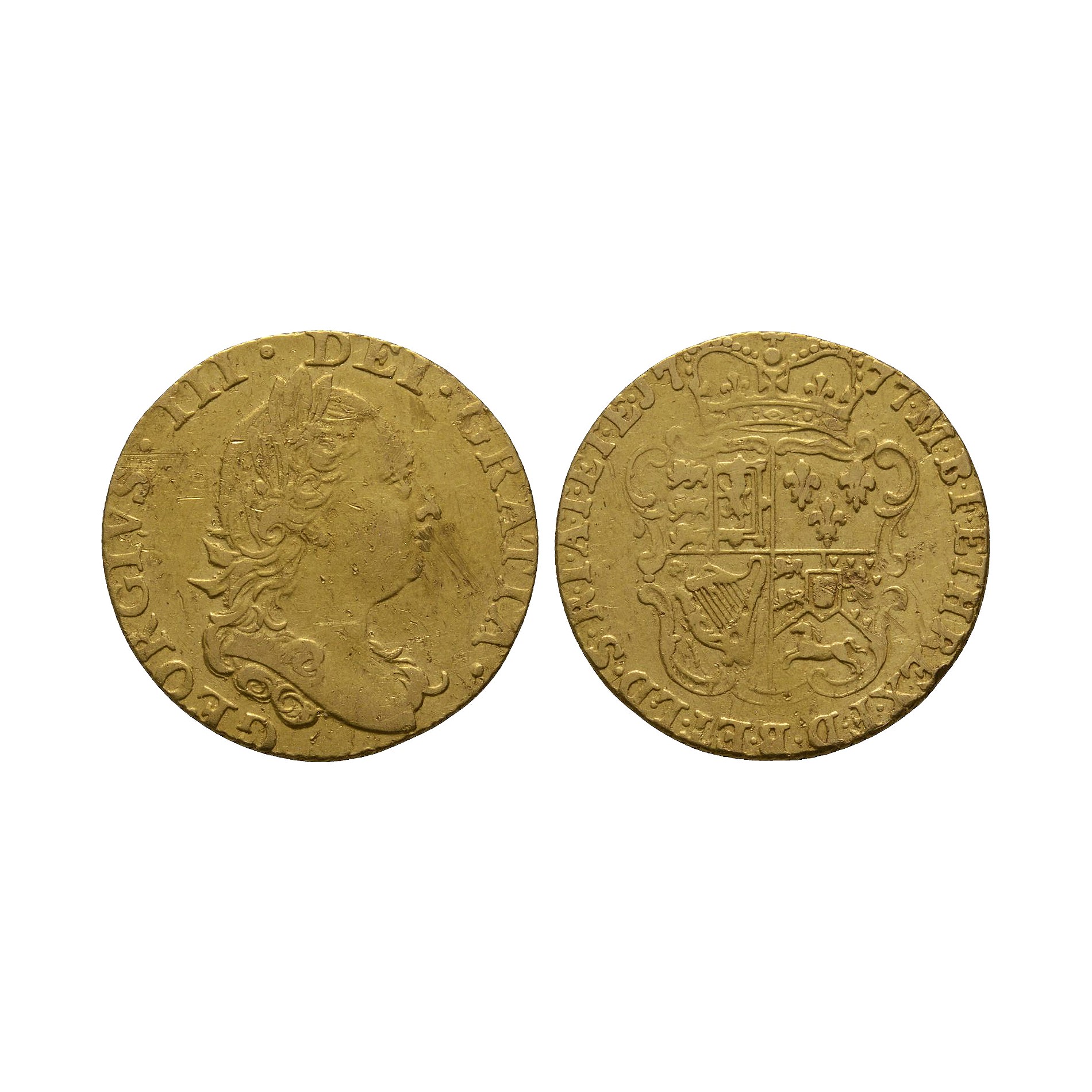 English Milled Coins - George III - 1777 - Gold Half Guinea Dated 1777 A.D.