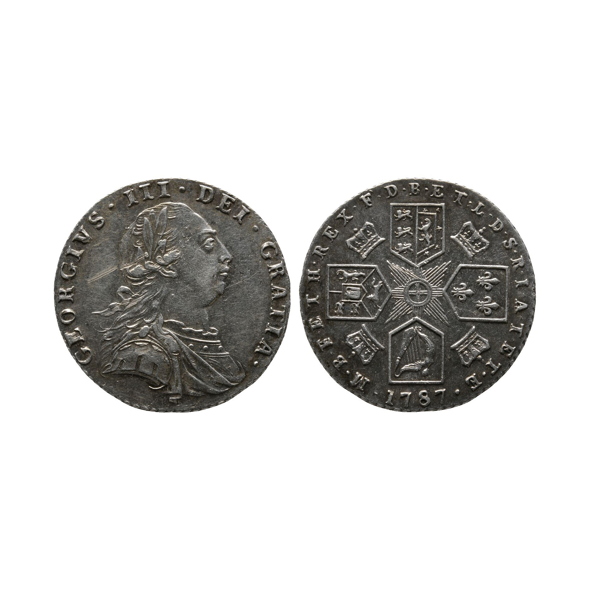 English Milled Coins - George III - 1787 (No Hearts) - AR Sixpence Dated 1787 A.D.