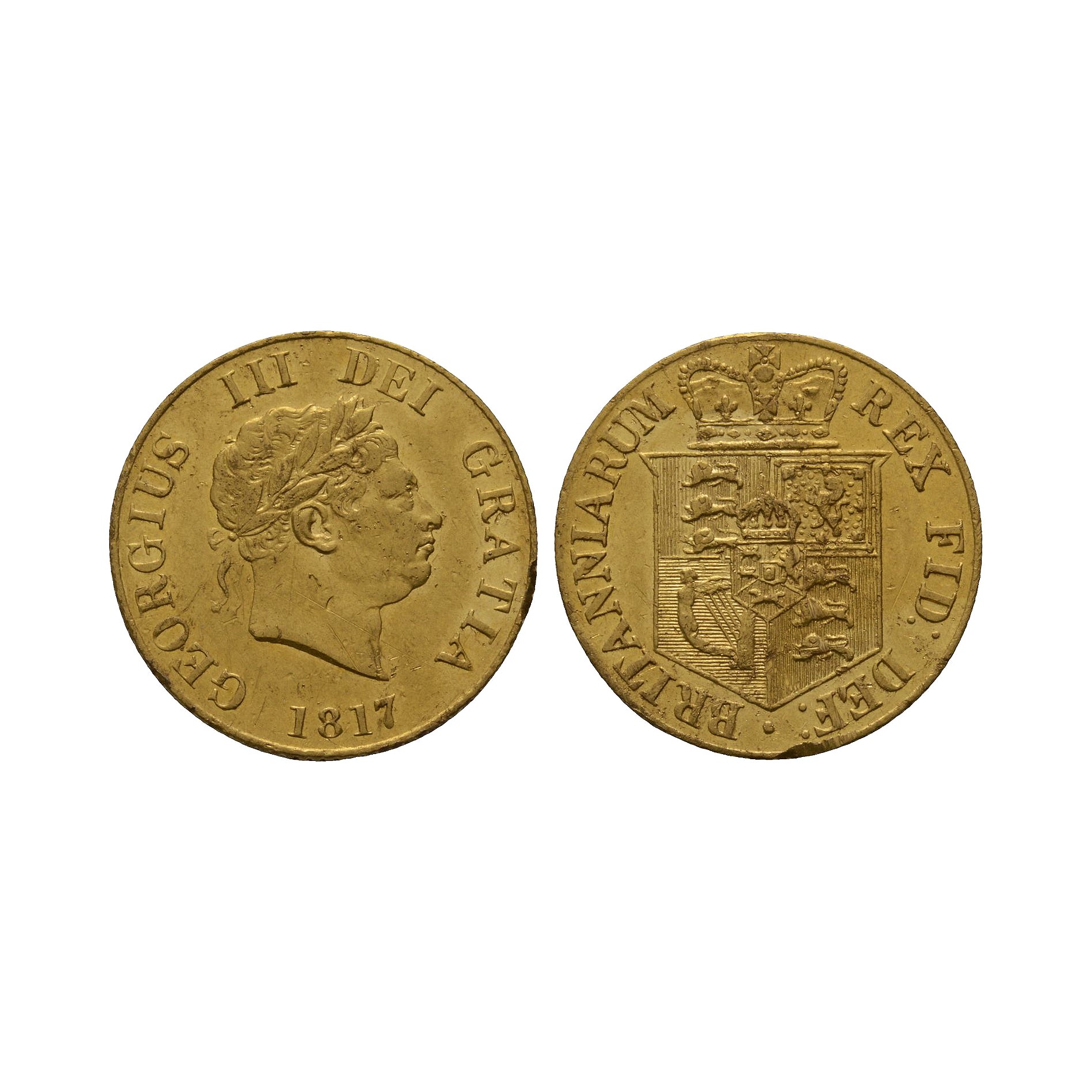English Milled Coins - George III - 1817 - AV Gold Half-Sovereign Dated 1817 A.D.