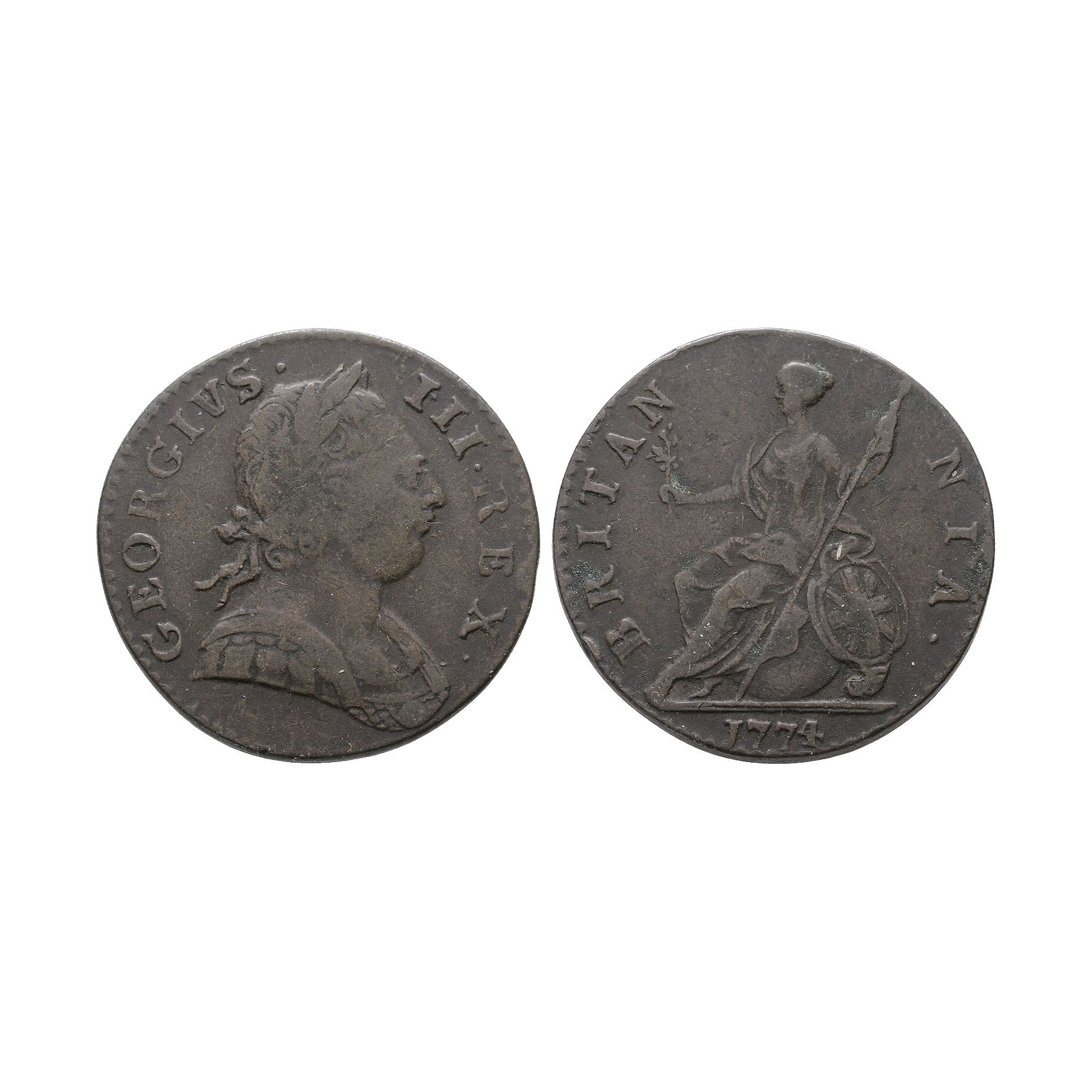 English Milled Coins - George III - AE Halfpenny Dated 1774 A.D.
