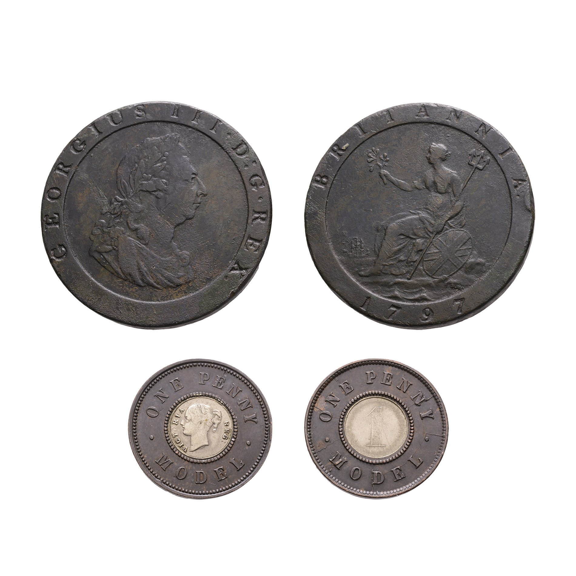 English Milled Coins - George III and Victoria - Penny and Model Penny Group [2] Dated 1797 and 1839-1901 A.D.