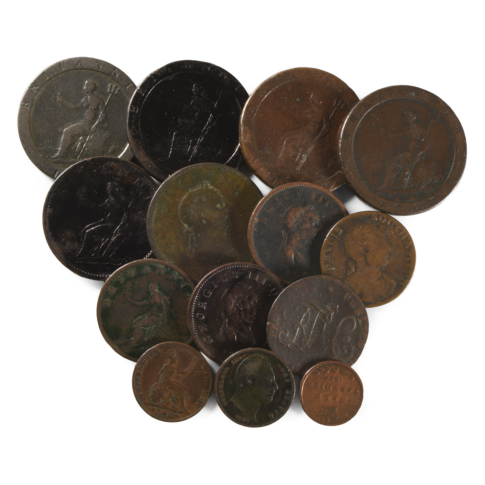 English Milled Coins - Mixed Georgian and Other AE Group [14] Dated 1792-1854 A.D.