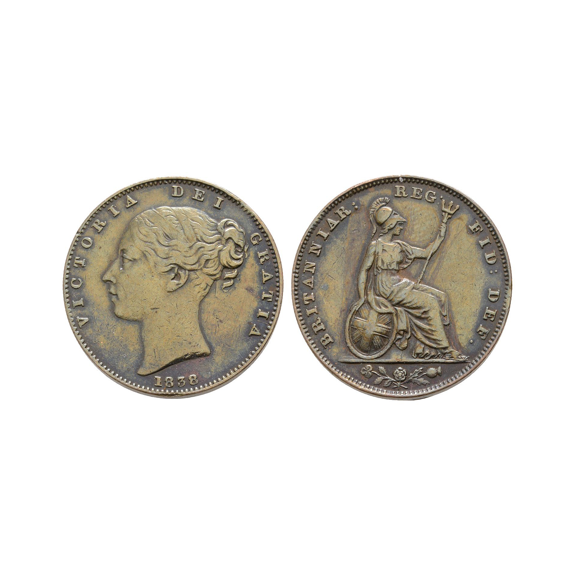 English Milled Coins - Victoria - 1838 - Bun Head AE Farthing Dated 1838 A.D.