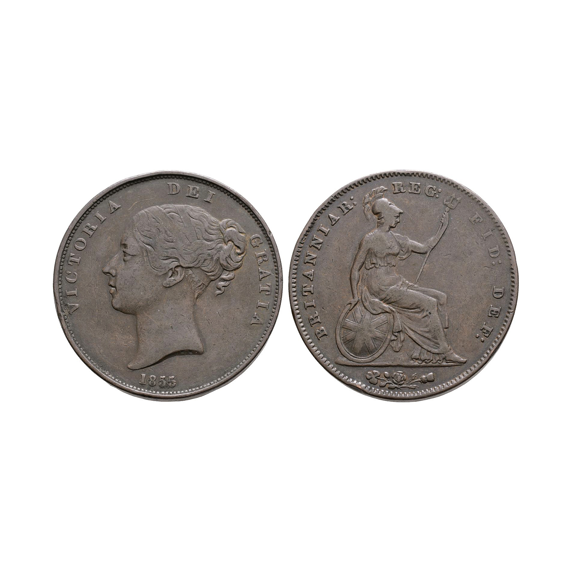 English Milled Coins - Victoria - 1855 PT - AE Penny Dated 1855 A.D.