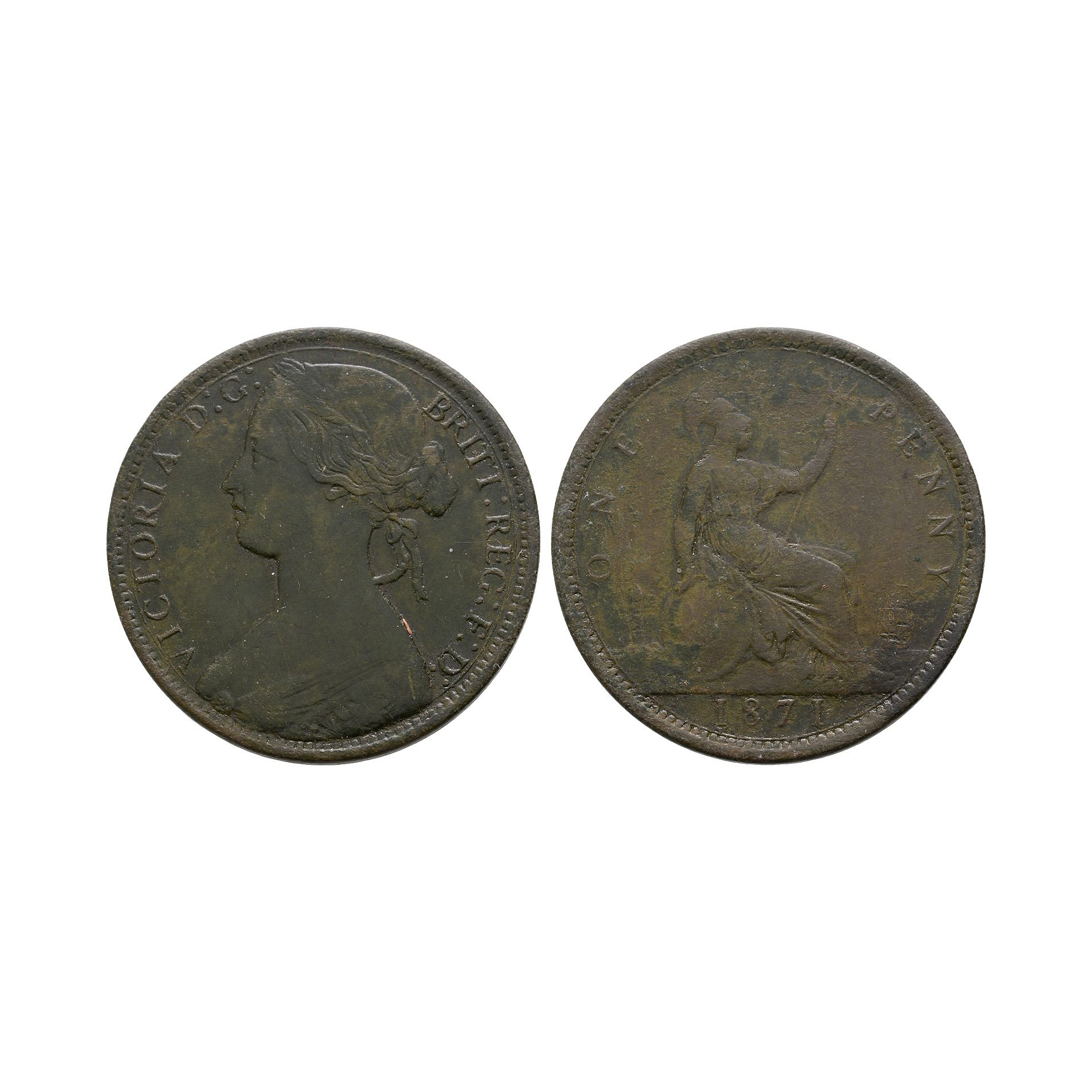 English Milled Coins - Victoria - 1871 - Bun Head AE Penny Dated 1871 A.D.