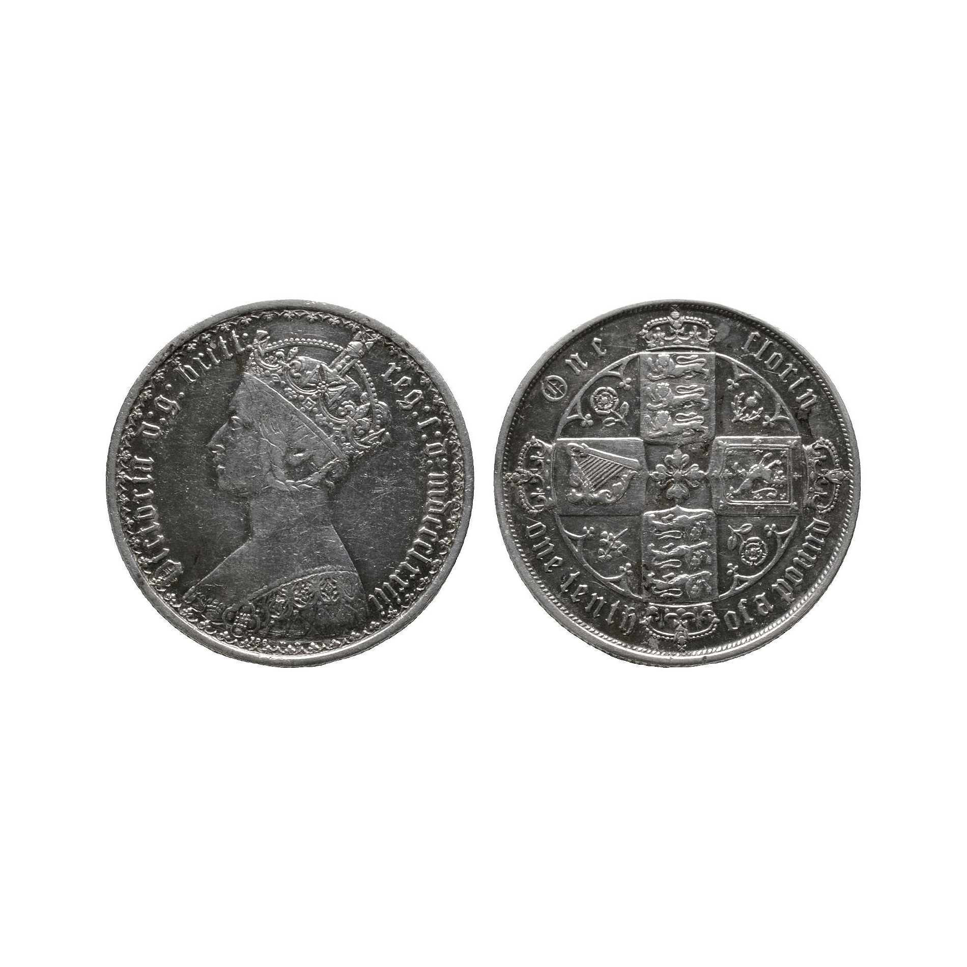English Milled Coins - Victoria - 1873 (MDCCCLXXIII) Die 47 - Gothic Florin Dated 1873 A.D.