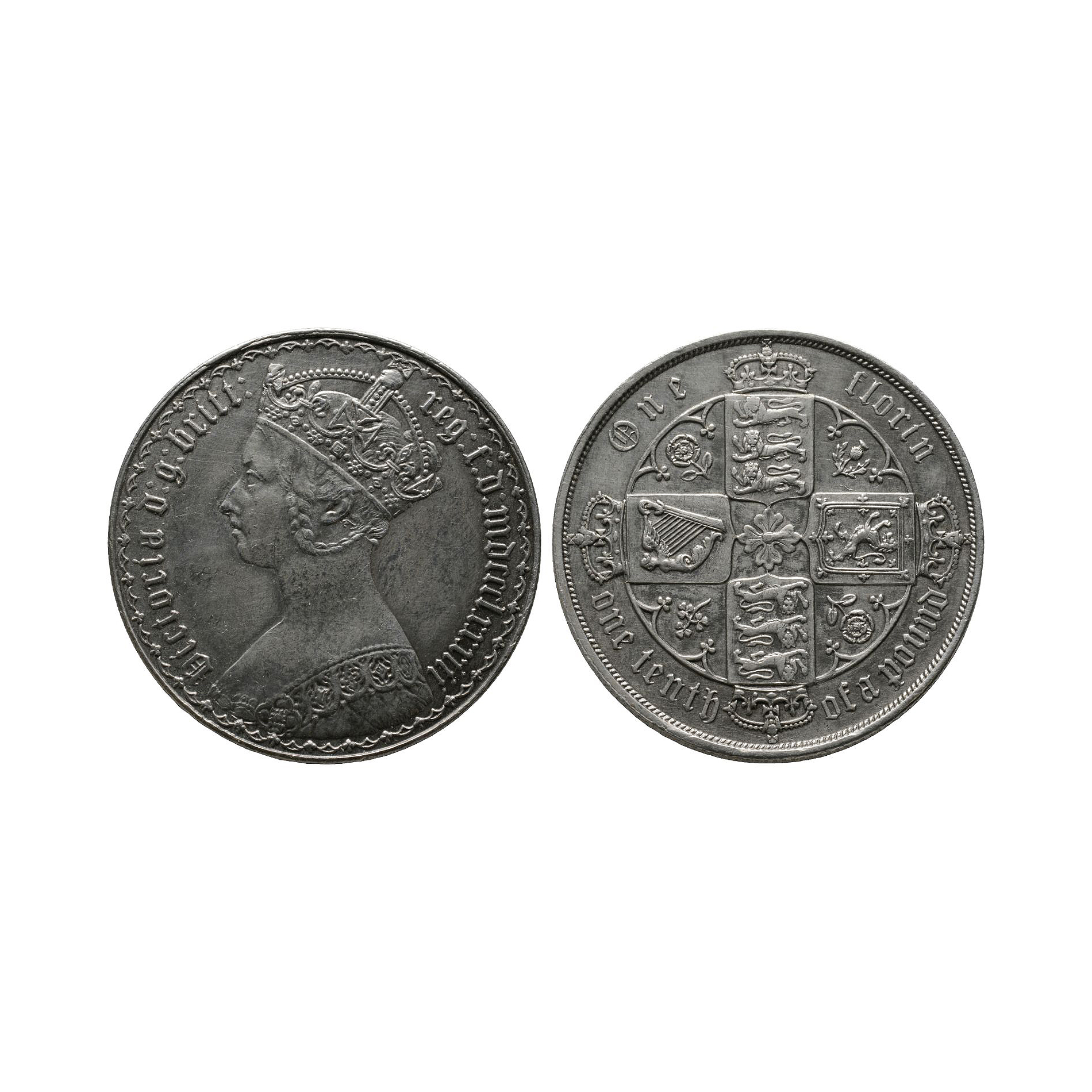 English Milled Coins - Victoria - 1883 - AR Gothic Florin Dated 1883 A.D.