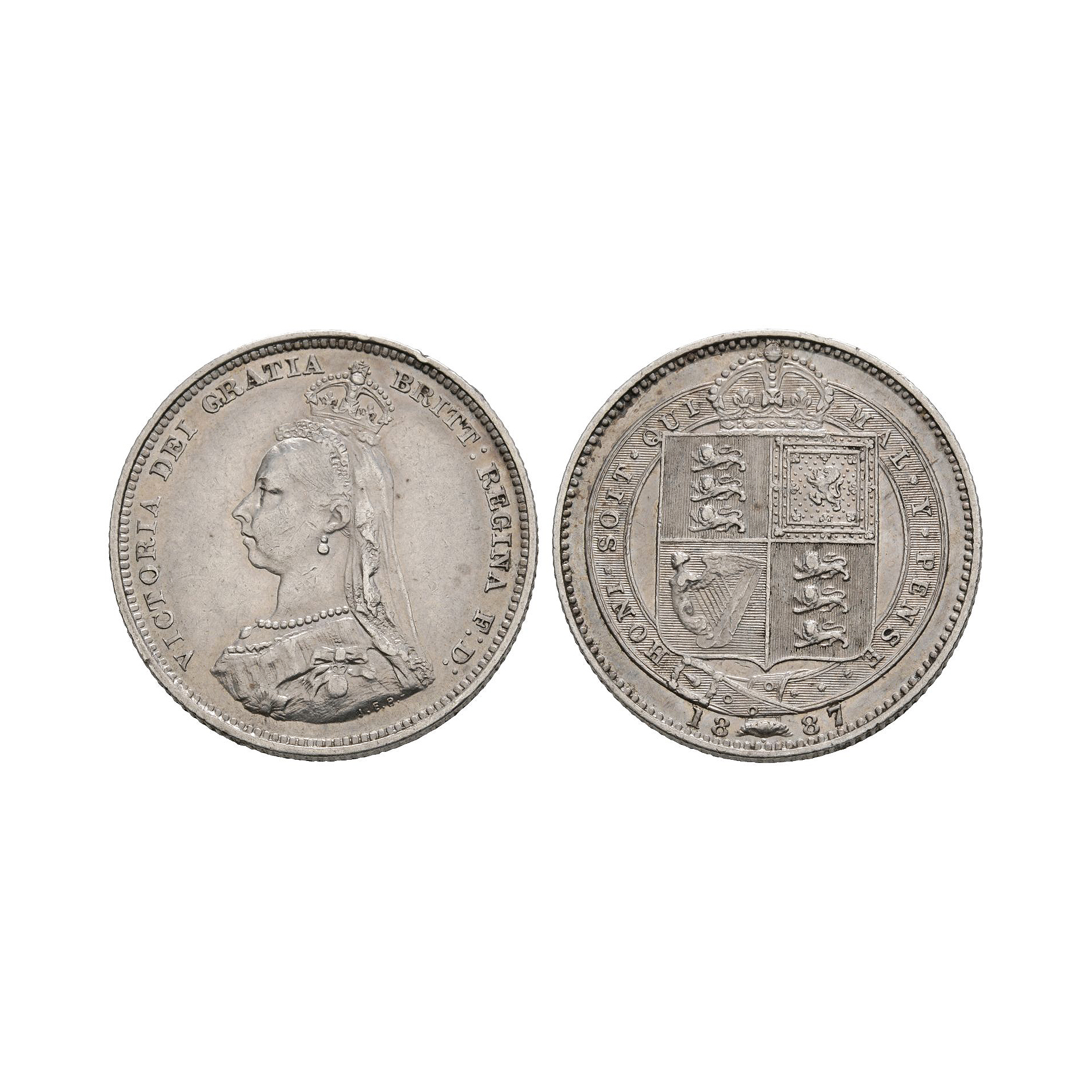 English Milled Coins - Victoria - 1887 - AR Shilling Dated 1887 A.D.