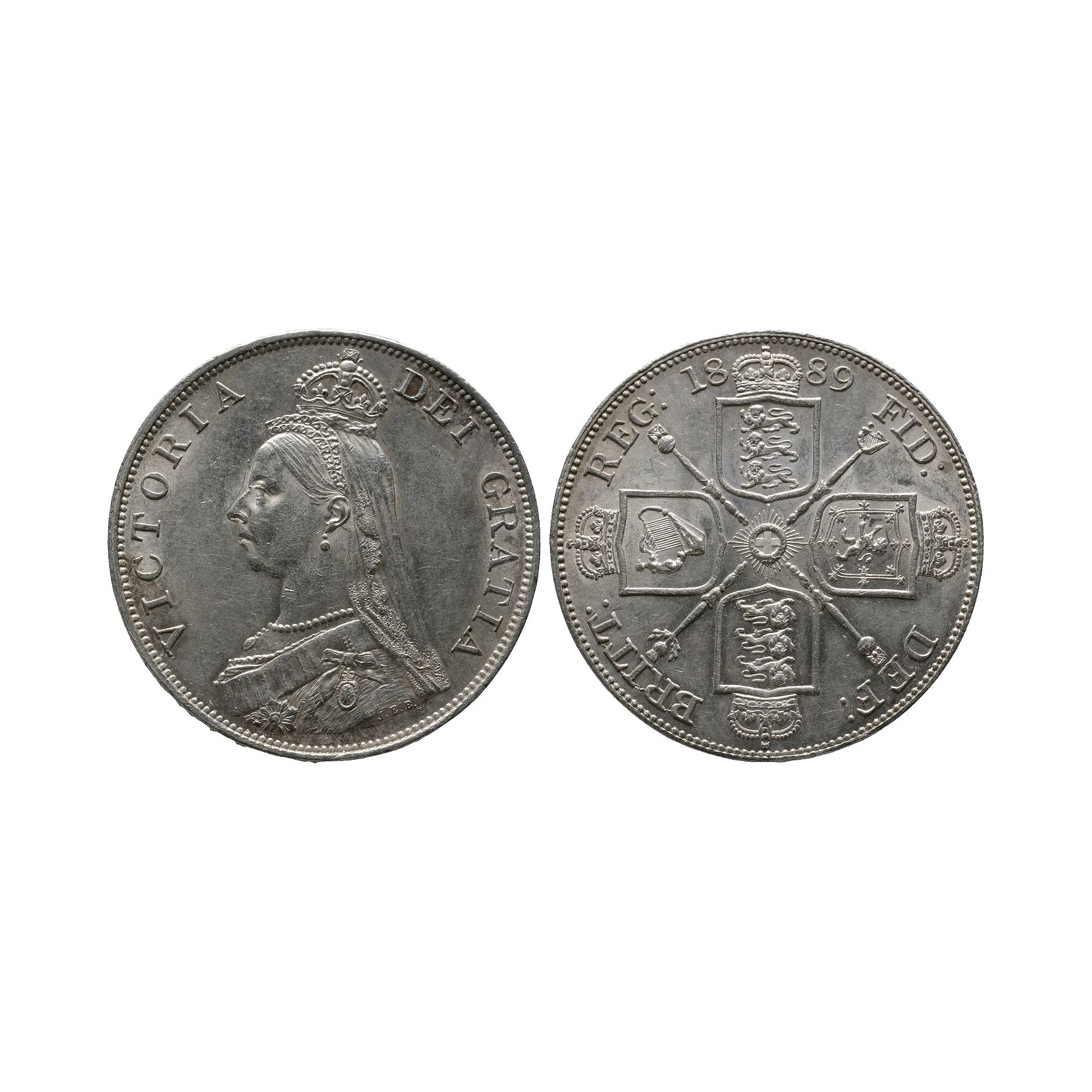 English Milled Coins - Victoria - 1889 - AR Double Florin Dated 1889 A.D.