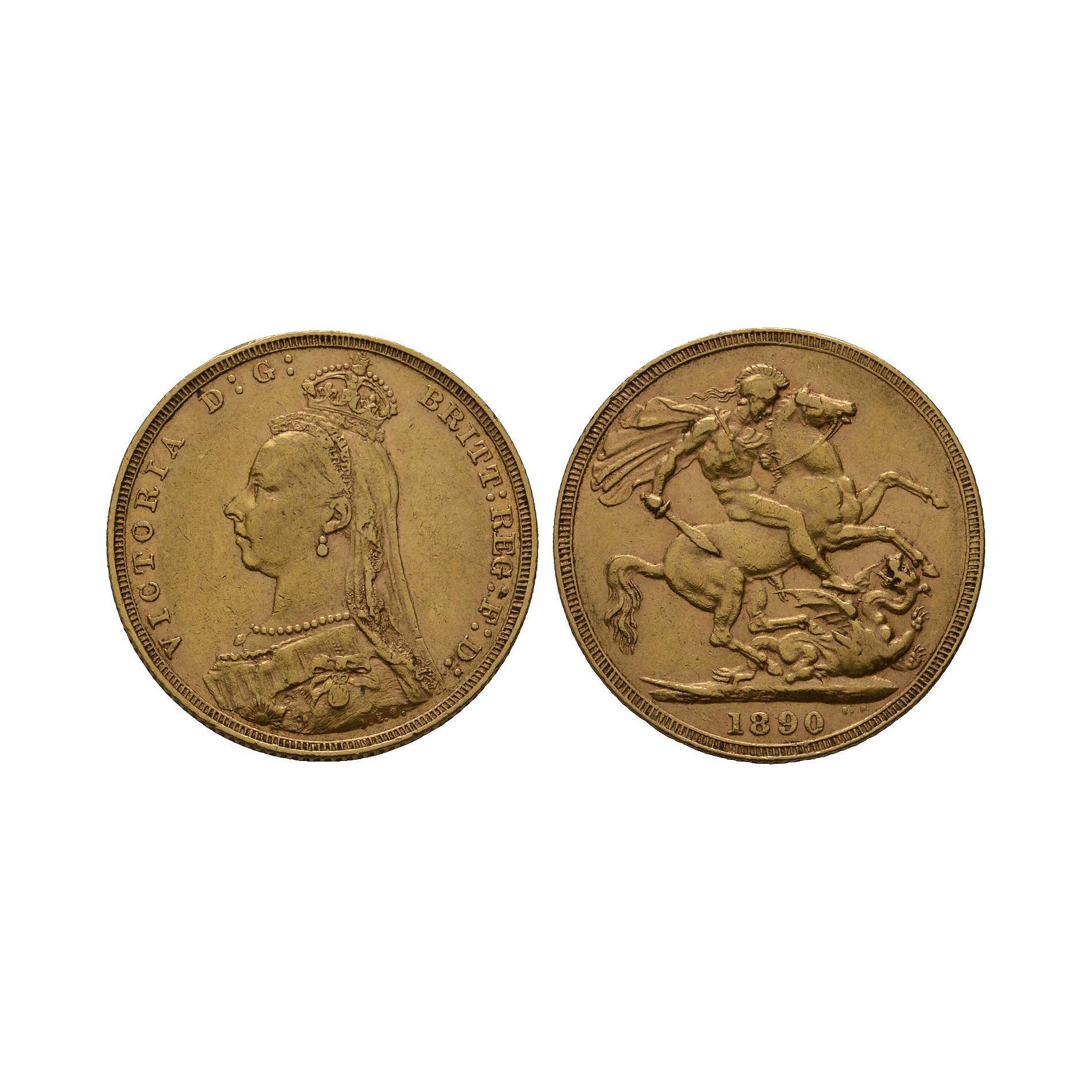 English Milled Coins - Victoria - 1890 - AV Gold Sovereign Dated 1890 A.D.
