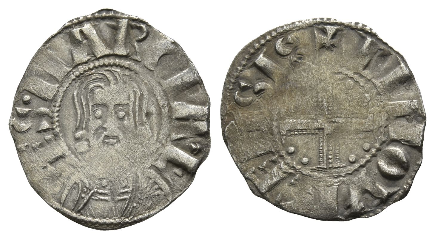SES • MARCIAL, facing bust of St. Martial / ✠ LEMOVICENSIS, cross pattée; pairs of pellets in each quarter. Boudeau 390; PdA. 2291. 0.92gr, 18mm, 8h.
