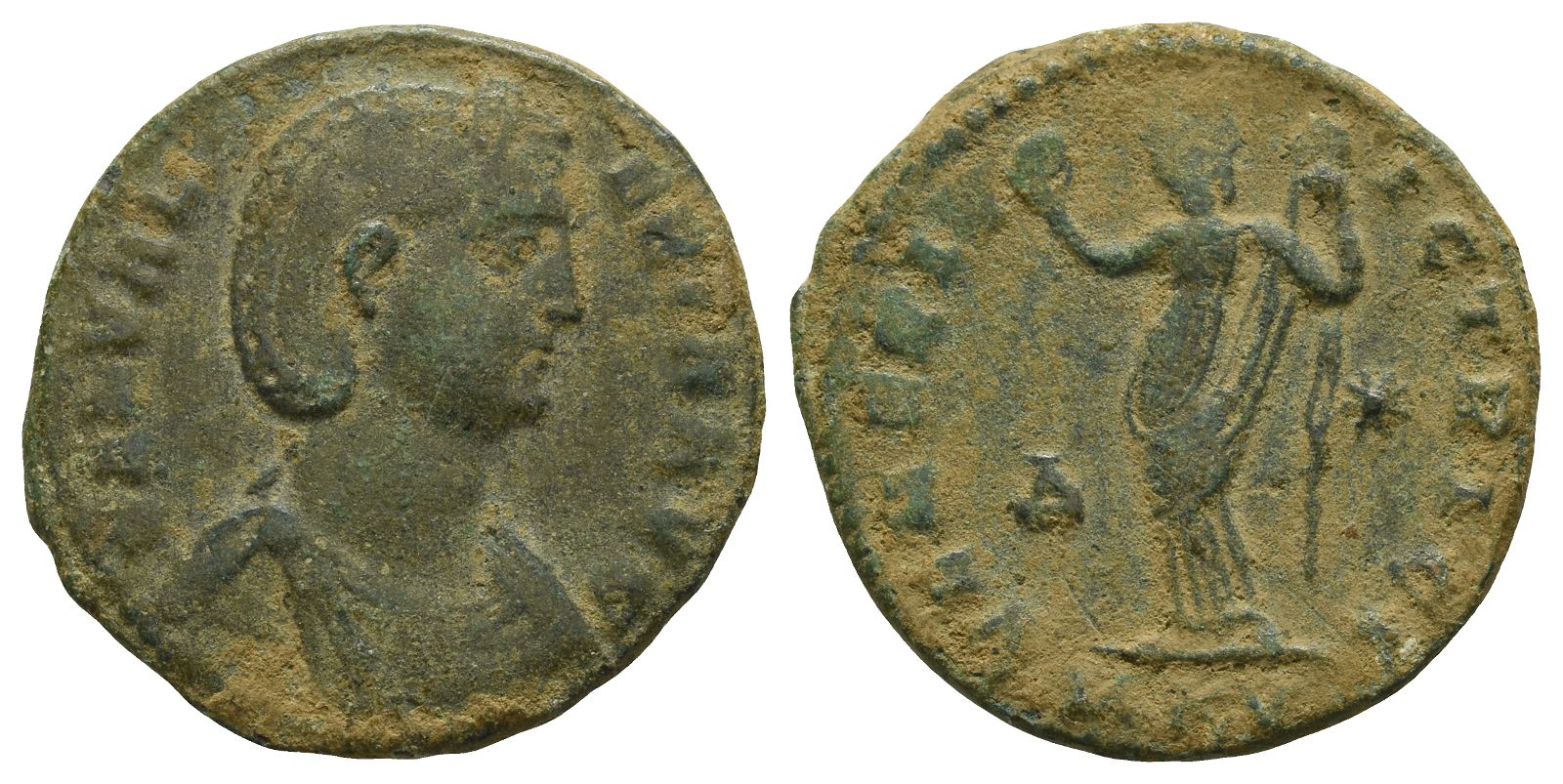 GAL VAL-ERIA AVG, diademed and draped bust to right / VENERI V-ICTRICI, Venus standing to left, holding apple and drapery; Δ and star across fields, MKV in exergue. RIC VI 58. 5.96gr, 26mm, 6h.
