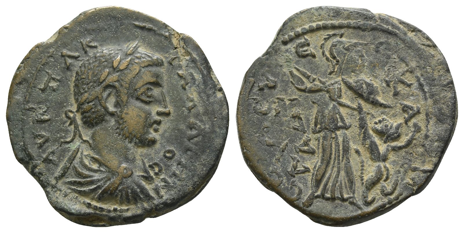 ΑV Κ Π ΛΚ ΓΑΛΛΙΗΝ-ΟϹ, laureate, draped and cuirassed bust to right / ϹЄΛЄVΚЄΩ ΚΑ- around, ΛV[...]-ΔΝ in field to left, Athena standing to right, holding shield and striking with spear at serpent-legged giant Enceladus, who hurls stone. RPC X Online Unassigned ID 60515. 9.54gr, 28mm, 6h.