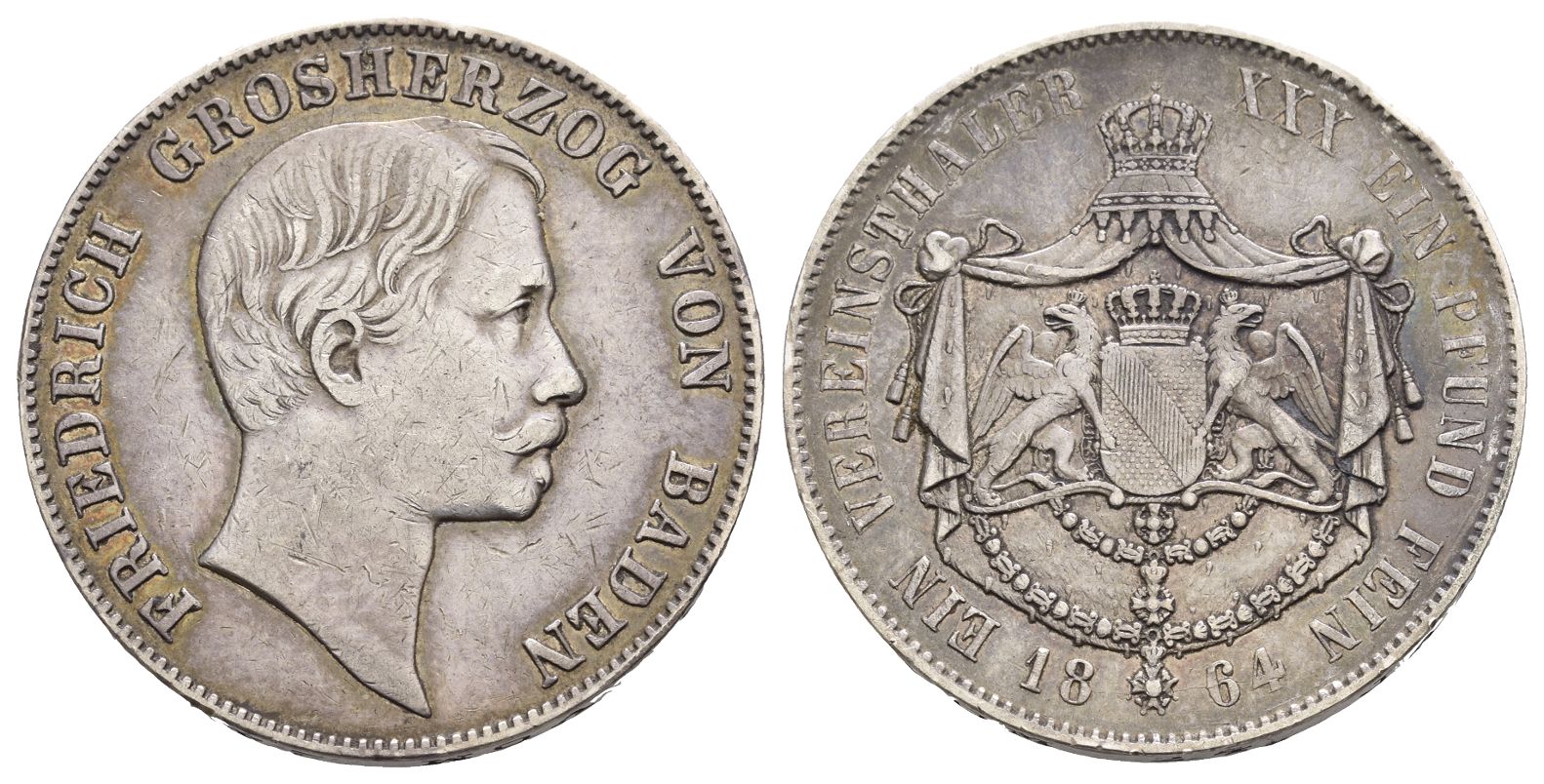 Back to previous pageGerman States. Baden (Grand Duchy), Friedrich I AR Vereinsthaler. Dated 1864. Karlsruhe mint.