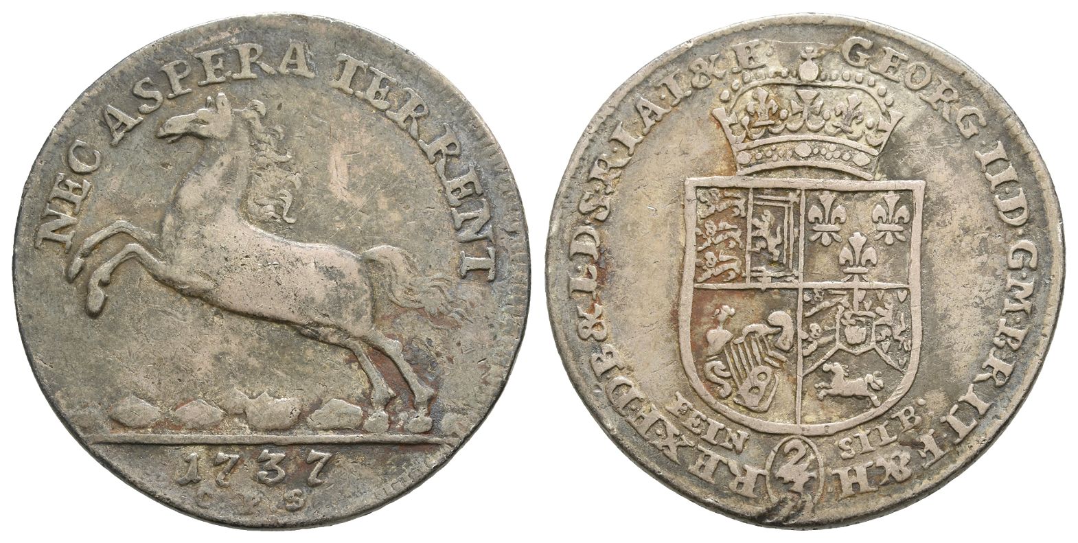 Back to previous pageGerman States. Brunswick-Lüneburg-Calenberg-Hannover, Georg II AR 2/3 Thaler. Dated 1737.