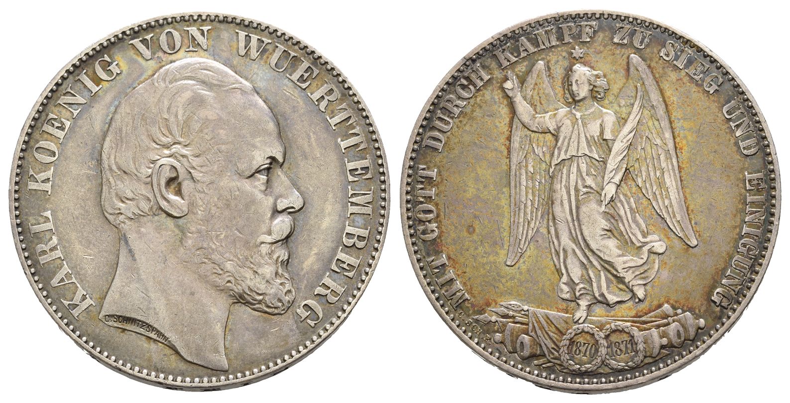 Back to previous pageGerman States. Württemberg (Kingdom), Karl I AR Thaler. Dated 1870-1871. Stuttgart mint. Commemorating the victorious conclusion of the Franco-Prussian war.