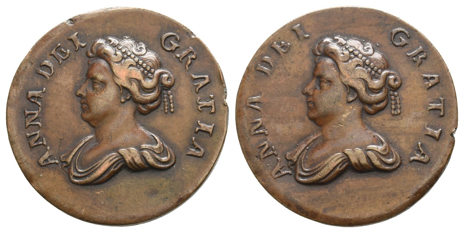ANNA DEI GRATIA, diademed and draped bust to left / ANNA DEI GRATIA, diademed and draped bust to left. Cf. BMC 75. 9.98gr, 28mm, 6h.
