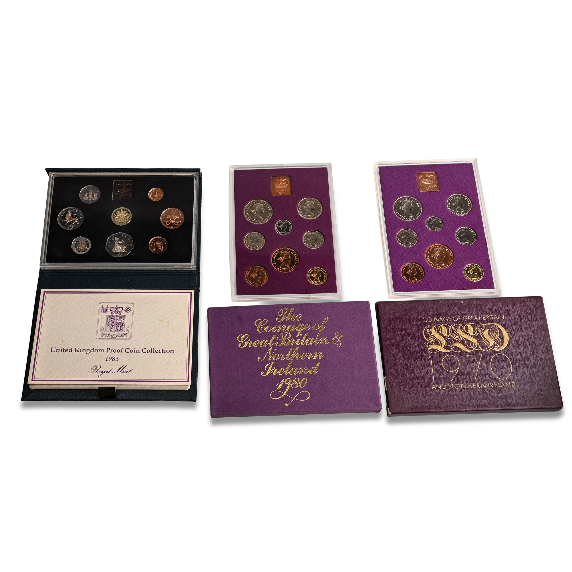 Back to previous pageGreat Britain. Group of Three [3] Boxed Proof Coin Collections. 1970 and 1983.