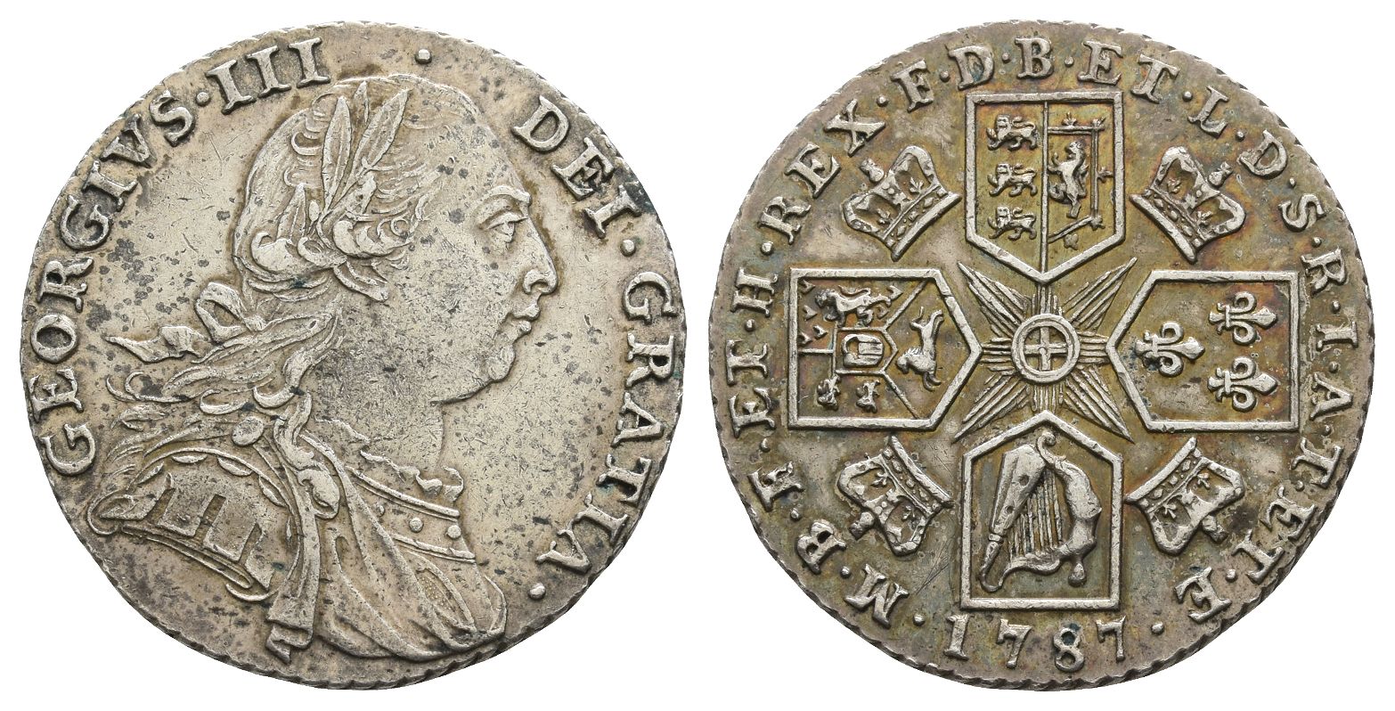 Great Britain. Hanover, George III AR Shilling. Dated 1787. London mint. Type with with semée of hearts.