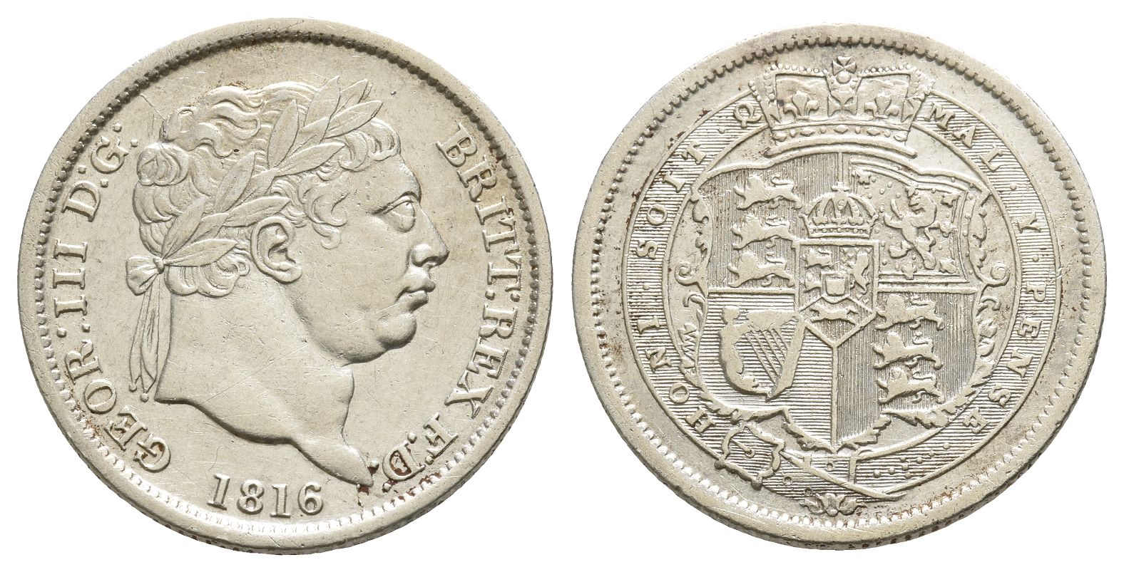 Great Britain. Hanover, George III AR Shilling. Dated 1816. London mint. 'Bull Head' type. Last coinage.