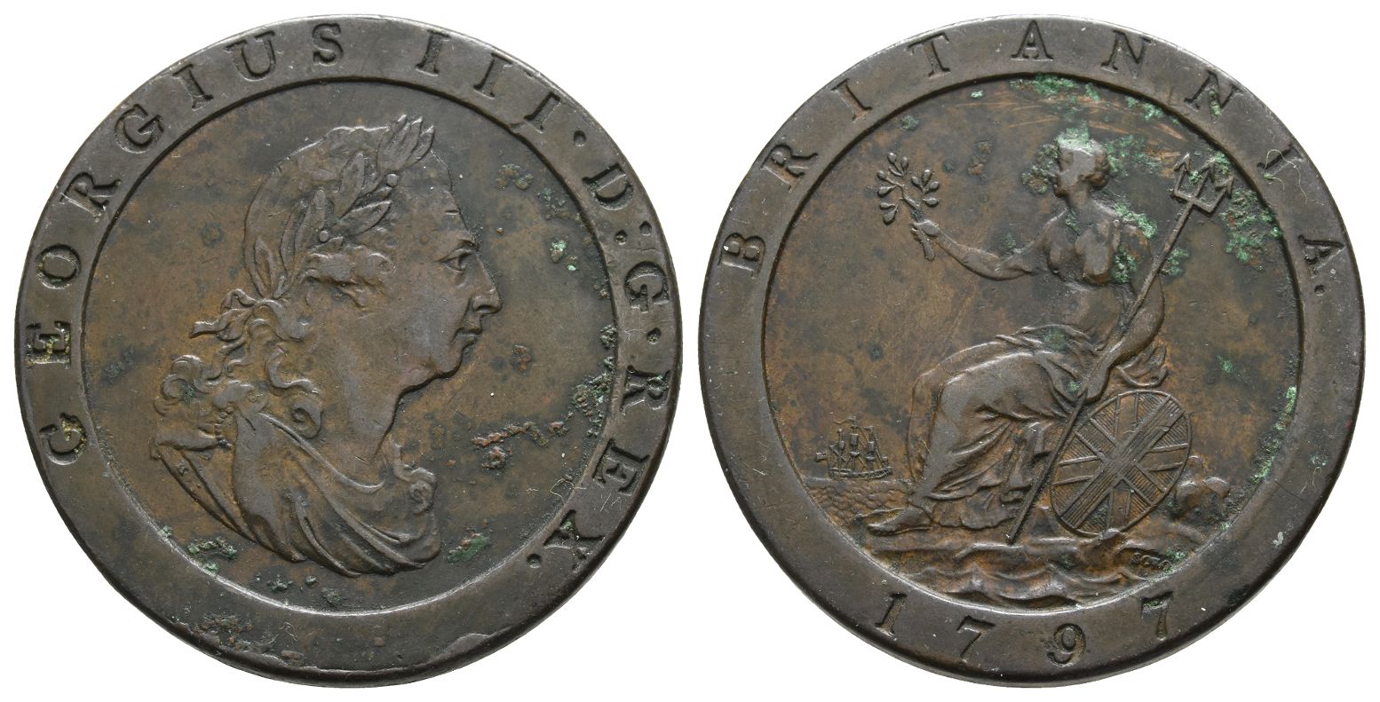 Great Britain. Hanover, George III CU Penny. Dated 1797. Soho (Birmingham) mint.