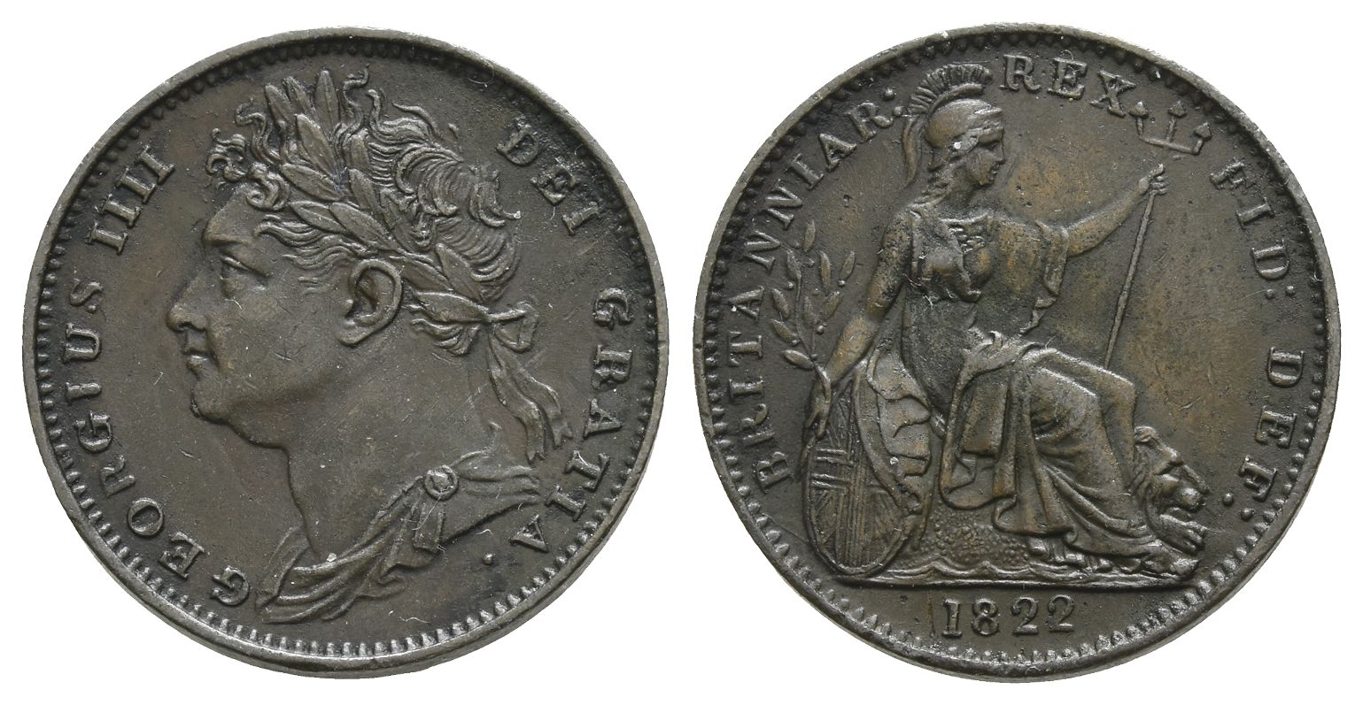 Great Britain. Hanover, George IV CU Farthing. Dated 1822. London mint.