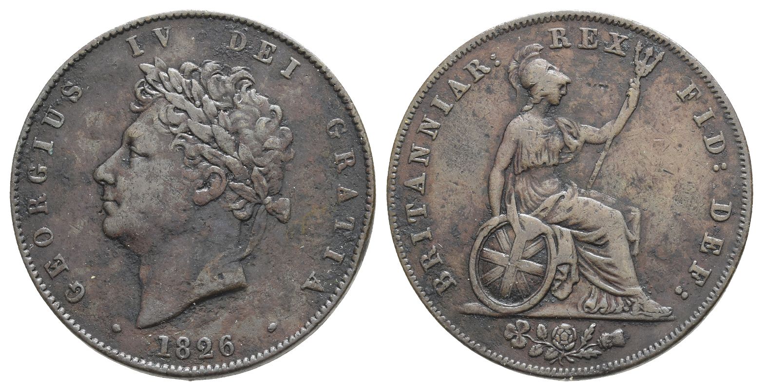 Great Britain. Hanover, George IV CU Halfpenny. Dated 1826. London mint.