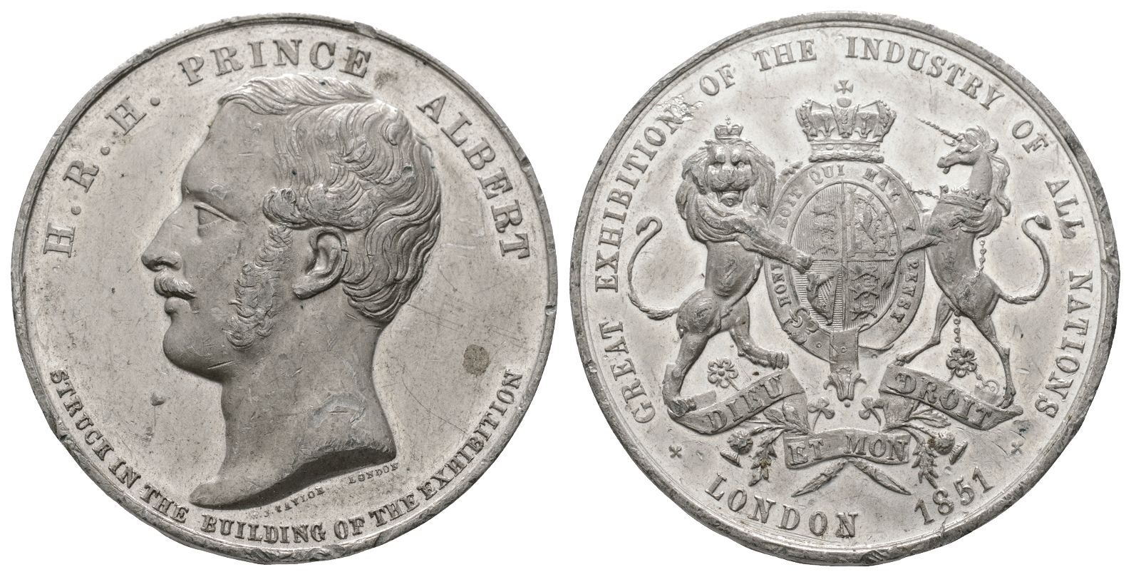 H. R. H. PRINCE ALBERT - STRUCK IN THE BUILDING OF THE EXHIBITION, bust facing to left / GREAT EXHIBITIONOF THE INDUSTRY OF ALL NATIONS LONDON 1851, lion and unicorn holding the royal coat of arms. 16.65gr, 38mm, 12h